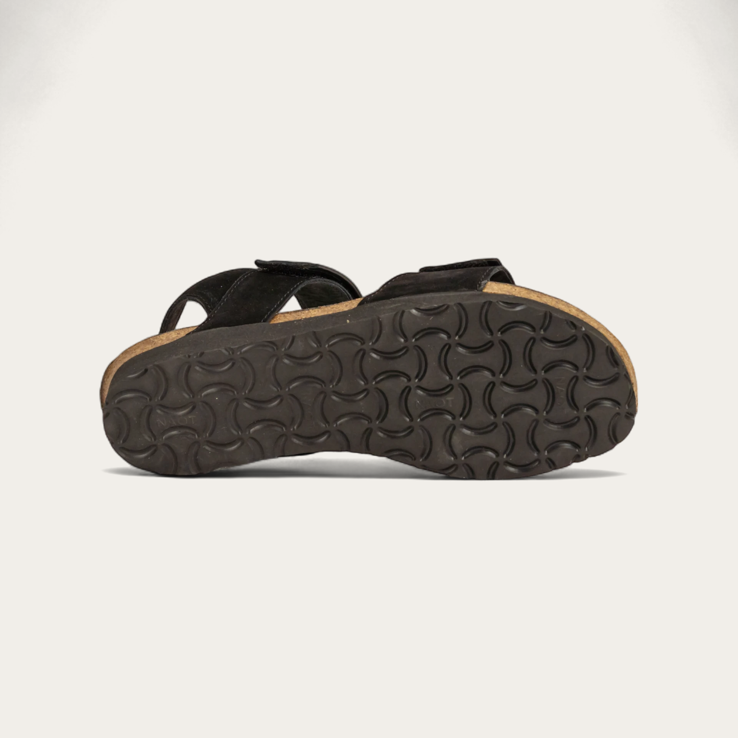 A nice looking sandal with dual adjustable straps makingmthem super comfortable. I have several pairs of Naot shoes nd love them all.
