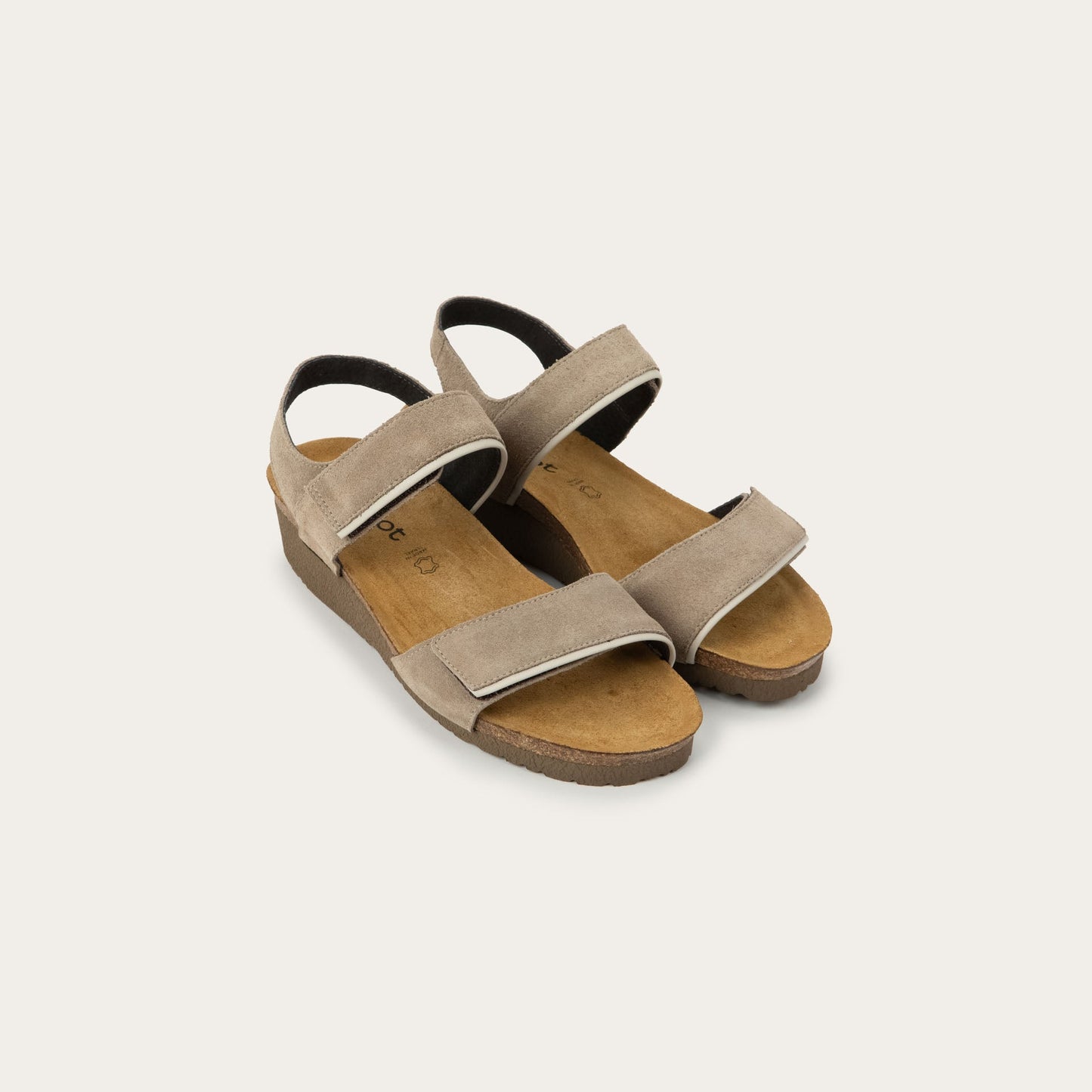A nice looking sandal with dual adjustable straps makingmthem super comfortable. I have several pairs of Naot shoes nd love them all.