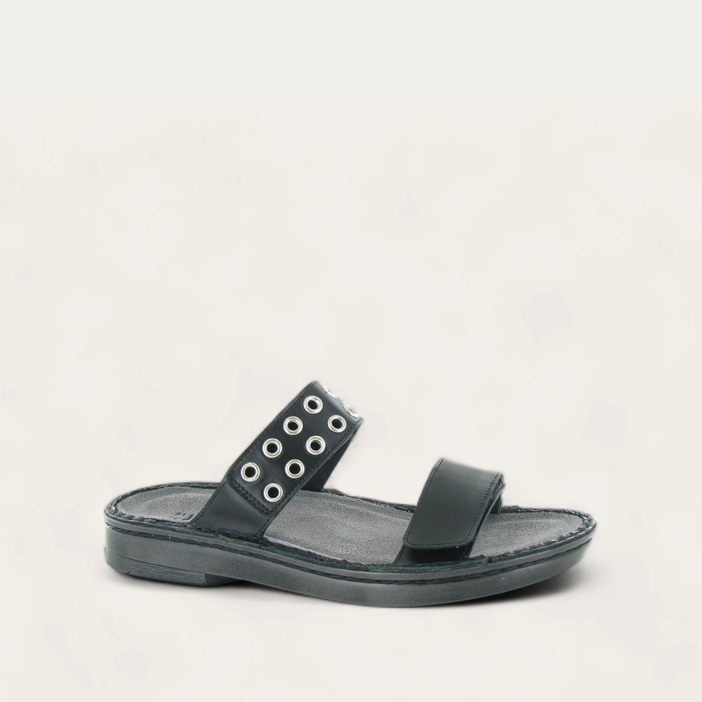 The Alameda sandal adds the perfect subtle edge to your style. With hook and loop straps on both the upper and lower straps, the Alameda is both comfortable and stylish. Naot's removable, anatomic cork and latex footbed is wrapped in pampering suede and molds to the shape of the foot with wear. The Utopia Collection features a 1.25" polyurethane sole which is extremely lightweight and durable.
