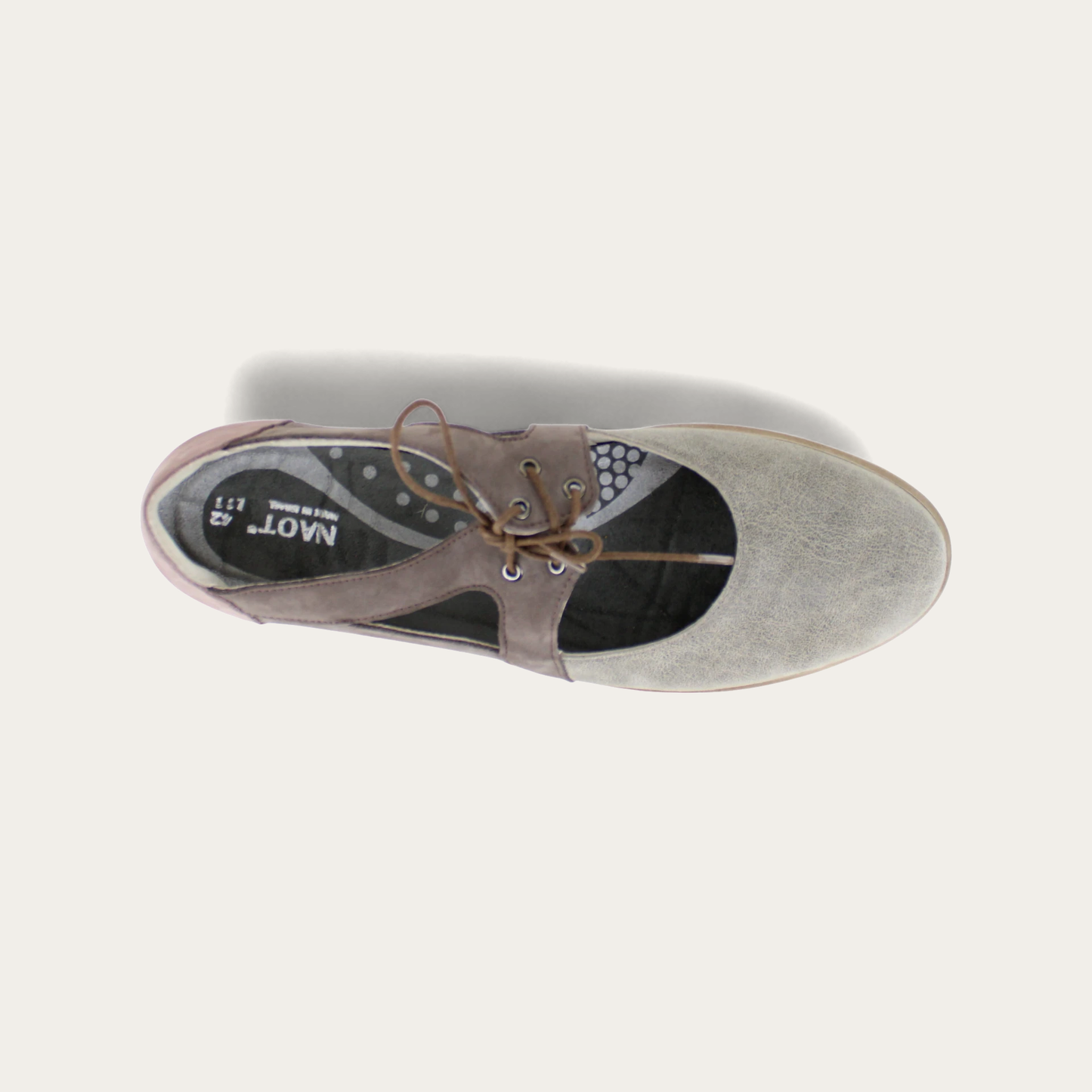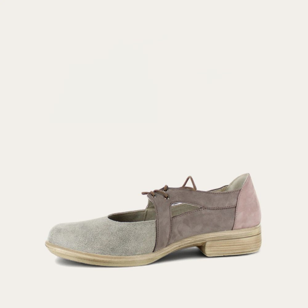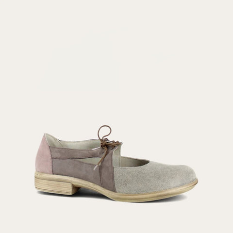 The Alisio is a charming yet durable fall shoe. With its neutral, tricolored nubuck, slip resistant sole, and securing laces, the Alisio matches with everything and is up for any autumn adventure. The Alisio also features Naot's removable, anatomic cork and latex footbed, which is wrapped in microfiber and leather and molds to the shape of the foot with wear. The Aura Collection features a 1.5" polyurethane sole with a metal shank which is extremely lightweight, durable and abrasive to prevent slipping. This collection uses a hand-sewn Strobel construction making it strong and extremely flexible. Alisio fits our Aura Footbed.