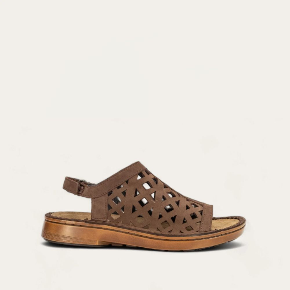With a hook and loop strap and full upper coverage, the Amadora sandal is both comfortable and stylish. Naot's removable, anatomic cork and latex footbed is wrapped in pampering suede and molds to the shape of the foot with wear. The Utopia Collection features a 1.25" polyurethane sole which is extremely lightweight and durable. American Podiatric Medical Association (APMA) Accepted for promoting good foot health. Our patented Naot Replacement Footbeds are also available for Amadora.
