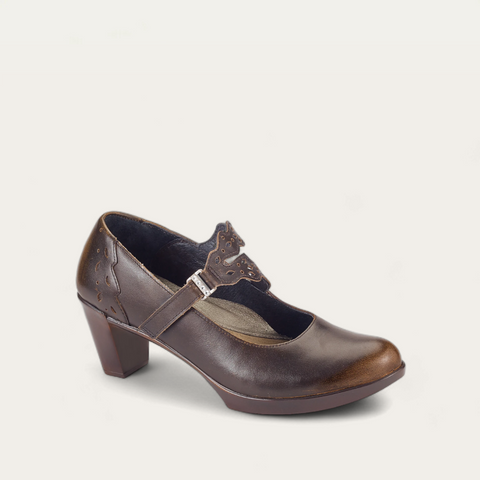 The Naot Amato is a feminine maryjane shoe with a delicate cutout leather hook and loop strap at the instep. This style has rhinestone accents on the instep strap. Naot's anatomic cork and memory foam footbed is wrapped in leather and microfiber and molds to the shape of the foot with wear. This collection uses a hand-sewn Strobel construction making it strong and extremely flexible. The Prima Bella Collection features a 2 3/4" polyurethane sole with a metal shank.