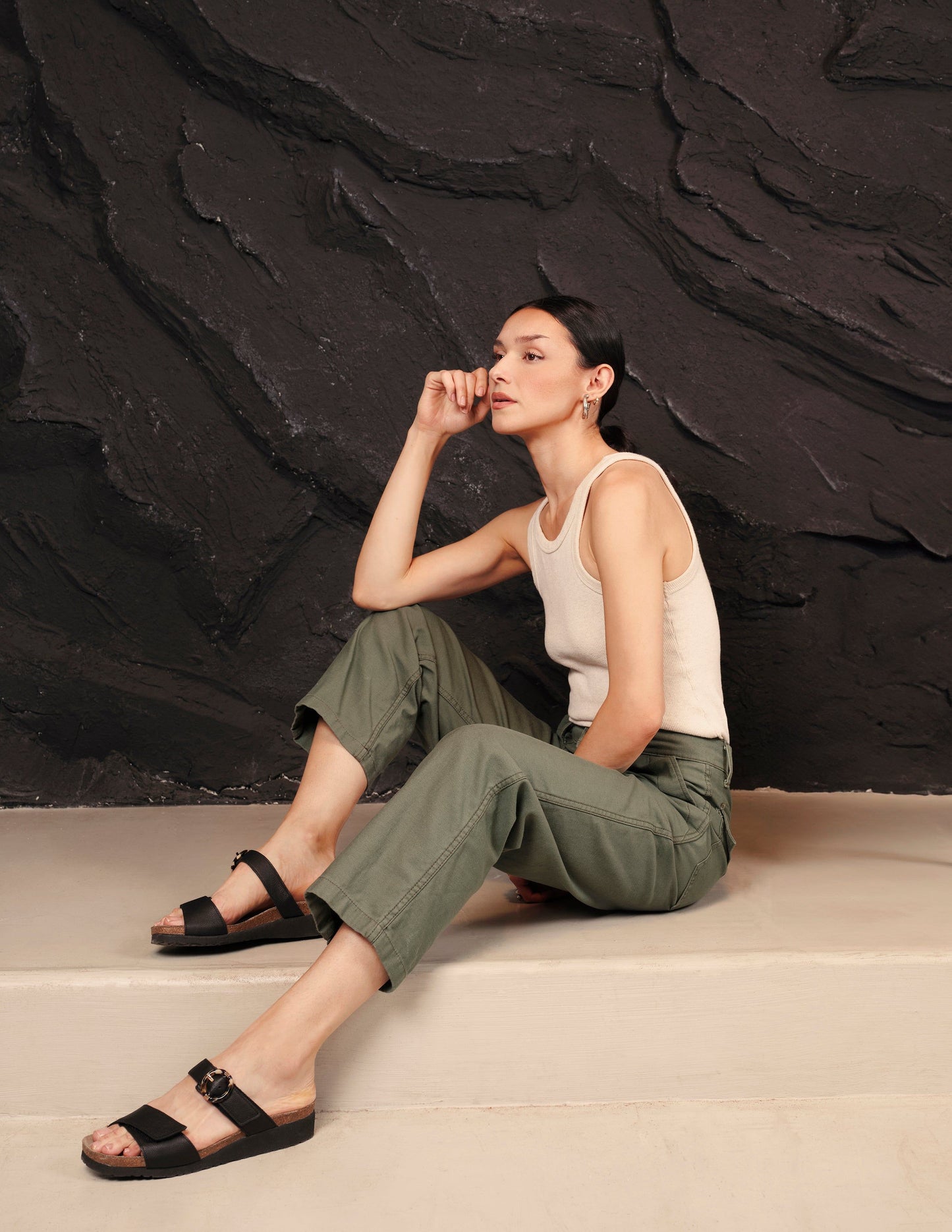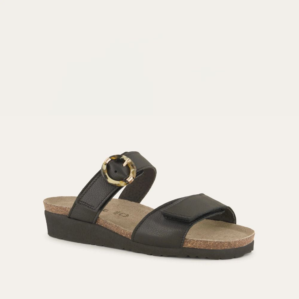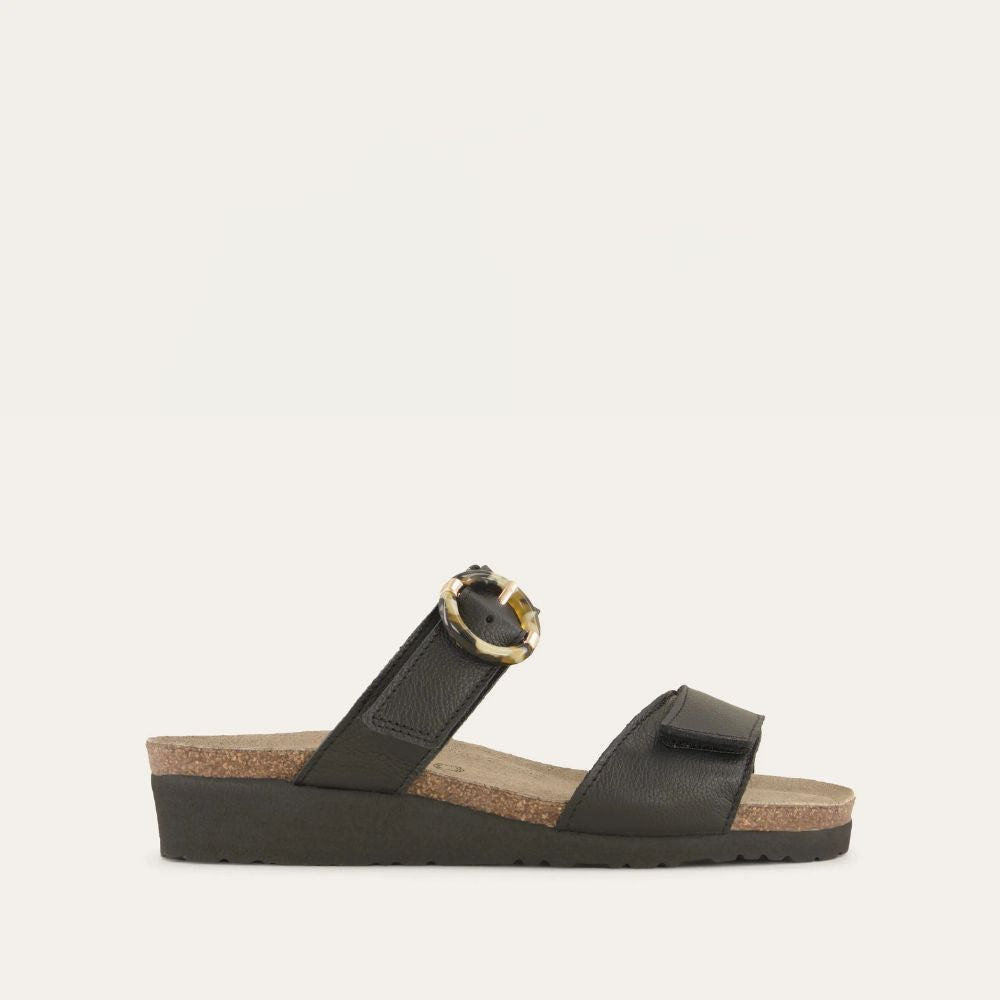 Anabel is an effortlessly elegant sandal with buckle accent on its strap. The Anabel features an open back to slip on with ease. Naot's anatomic cork and latex footbed is wrapped in a pampering suede and molds to the shape of the foot with wear.