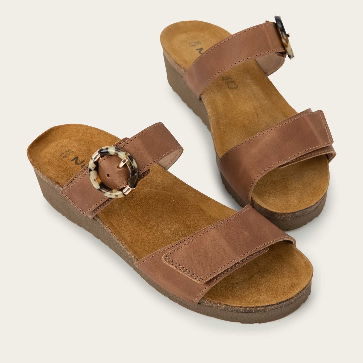Anabel is an effortlessly elegant sandal with buckle accent on its strap. The Anabel features an open back to slip on with ease. Naot's anatomic cork and latex footbed is wrapped in a pampering suede and molds to the shape of the foot with wear.