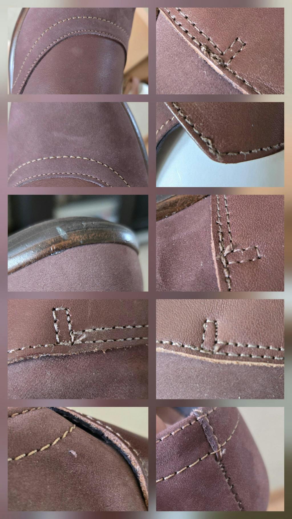 Cons: There are 3 very visible marks on the left shoe in addition to a snag in the leather. Both shoes have ugly stitching, multiple places have stray threads fraying out.