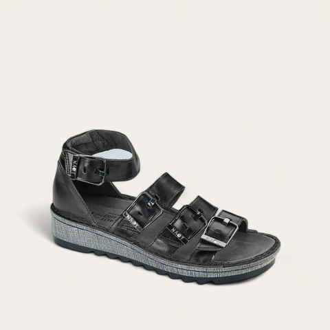 The Naot Begonia is a stylish sandal with four hook and loop straps with faux buckles for complete adjustability. Naot's removable, anatomic cork and latex footbed is wrapped in pampering suede and molds to the shape of the foot with wear. The Bloom Collection features a 1.75'' polyurethane sole which is extremely lightweight, and durable.