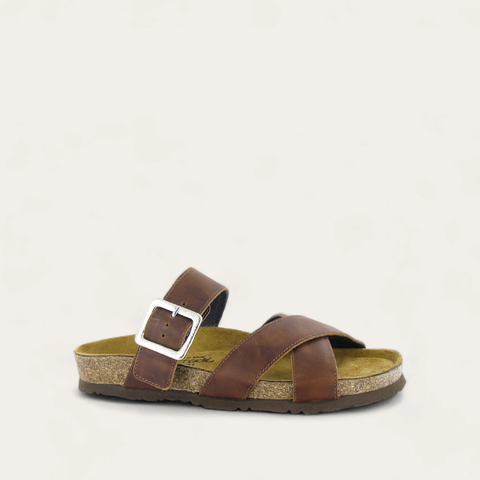 An easy versatile slip on with crisscross straps and an iconic buckle. The Chicago slide is the perfect everyday sandal. Naot's anatomic cork and latex footbed is wrapped in a pampering suede and molds to the shape of the foot with wear. The Classic Collection features a 1.25" EVA sole.