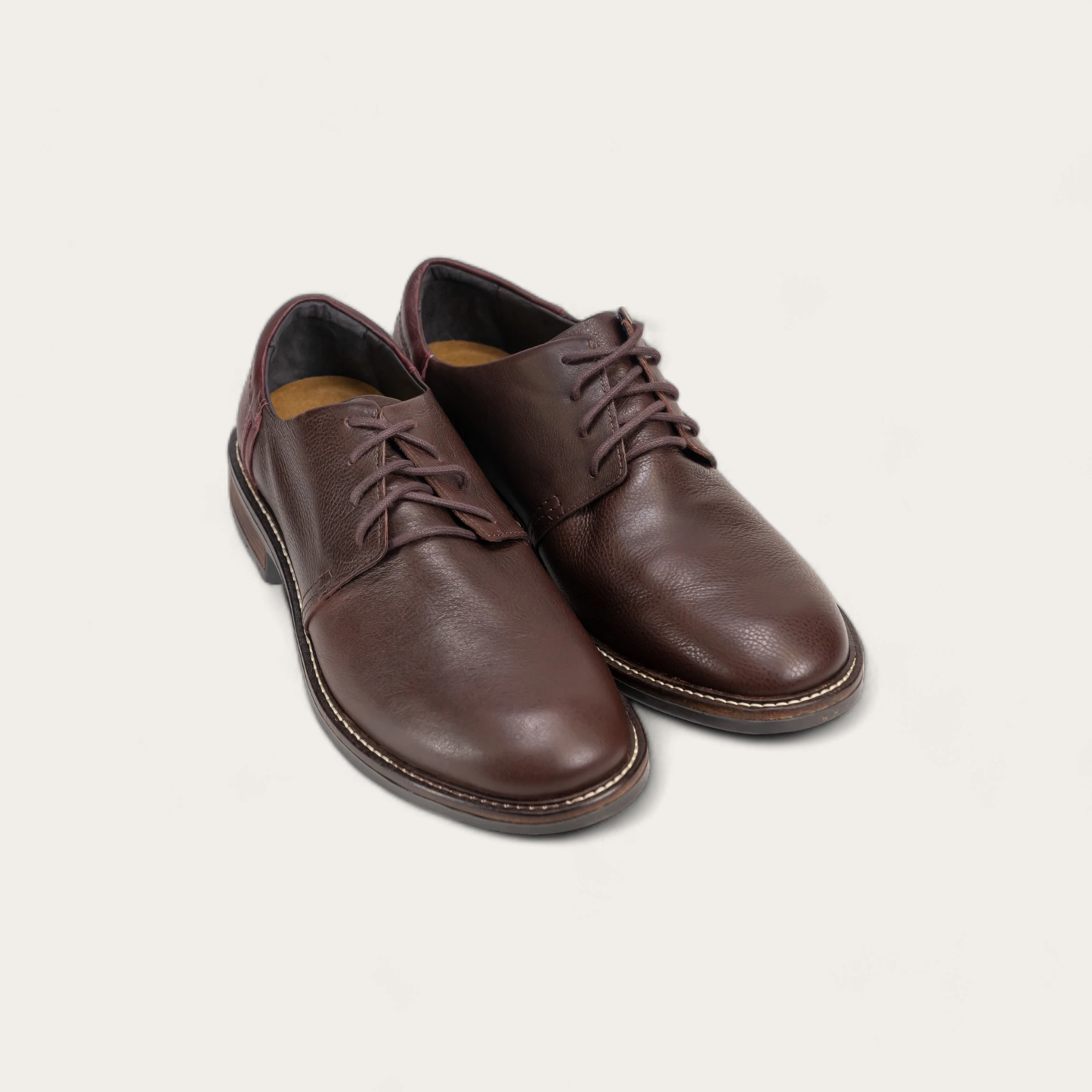 The Naot Chief is a lace up dress shoe with a contrasting heel cup. This style has a padded heel cup and tongue for ultimate comfort. The Chief has padded technical lining in the front for comfort and moisture absorption. Naot's removable, anatomic cork and latex footbed is wrapped in pampering suede and molds to the shape of the foot with wear. The Executive Collection features a 1.75" TPR sole. This collection uses a hand-sewn Strobel construction making it strong and extremely flexible. Our patented Naot Replacement Footbeds are also available for Chief. Plus, it's American Podiatric Medical Association (APMA) accepted for promoting good foot health.