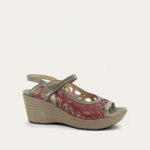 The Deluxe is a trendy 2.75" wedge heel with a unique cutout design and contrasting leather trim. This shoe has a back strap for support and a hook and loop strap at the instep for adjustability. The Deluxe has enclosed sides which provides addition support. Naot's anatomic cork and latex footbed is wrapped in leather with a microfiber center to prevent slipping and molds to the shape of the foot with wear. The Impulse Collection features a TPR sole which is extremely lightweight.
