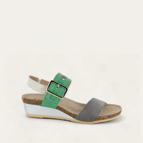 Go day to night with all day comfort and style in the Dynasty wedge. This sandal features fun multi colored straps and a hook and loop closure for adjustability. Naot's anatomic cork and latex footbed is wrapped in a pampering suede and molds to the shape of the foot with wear.