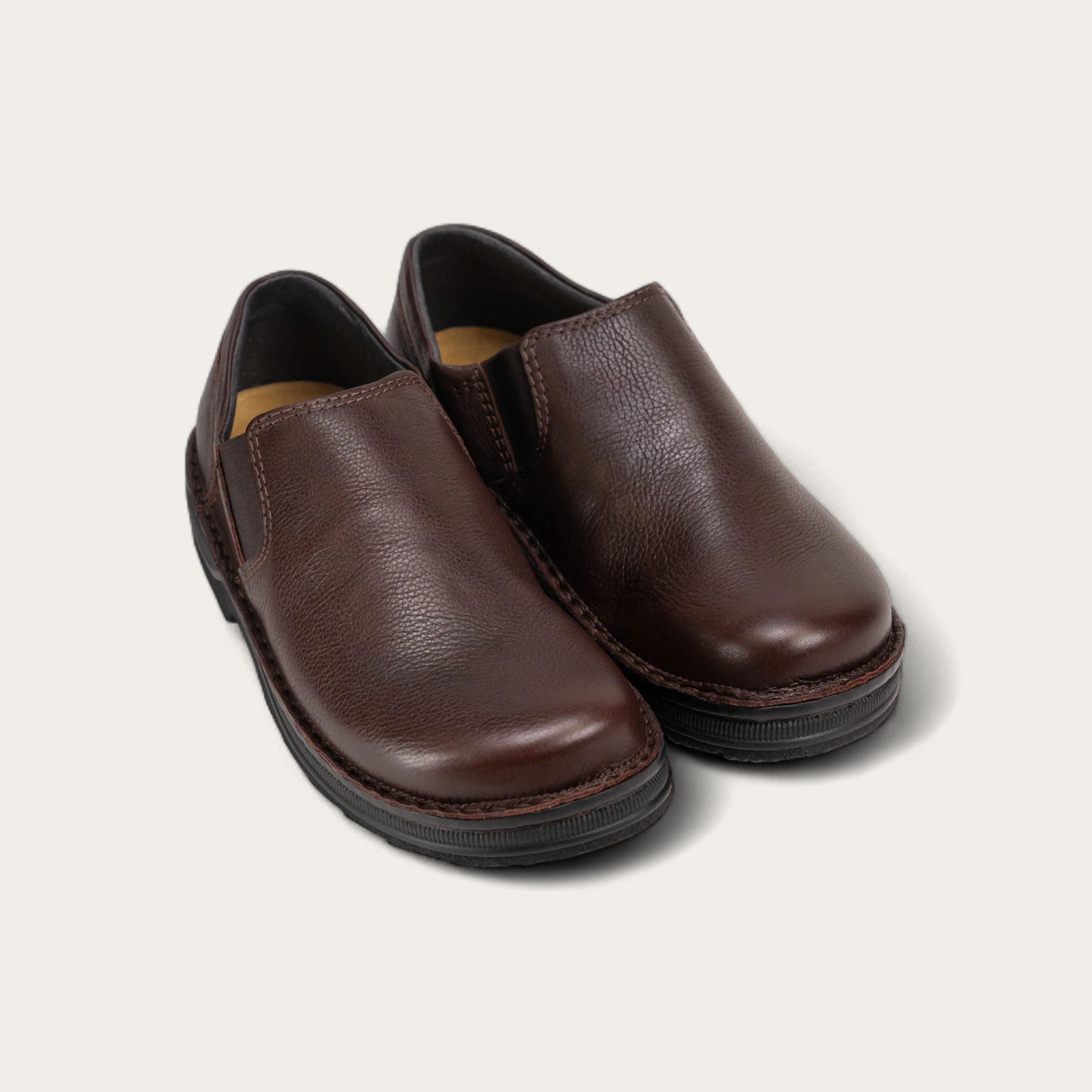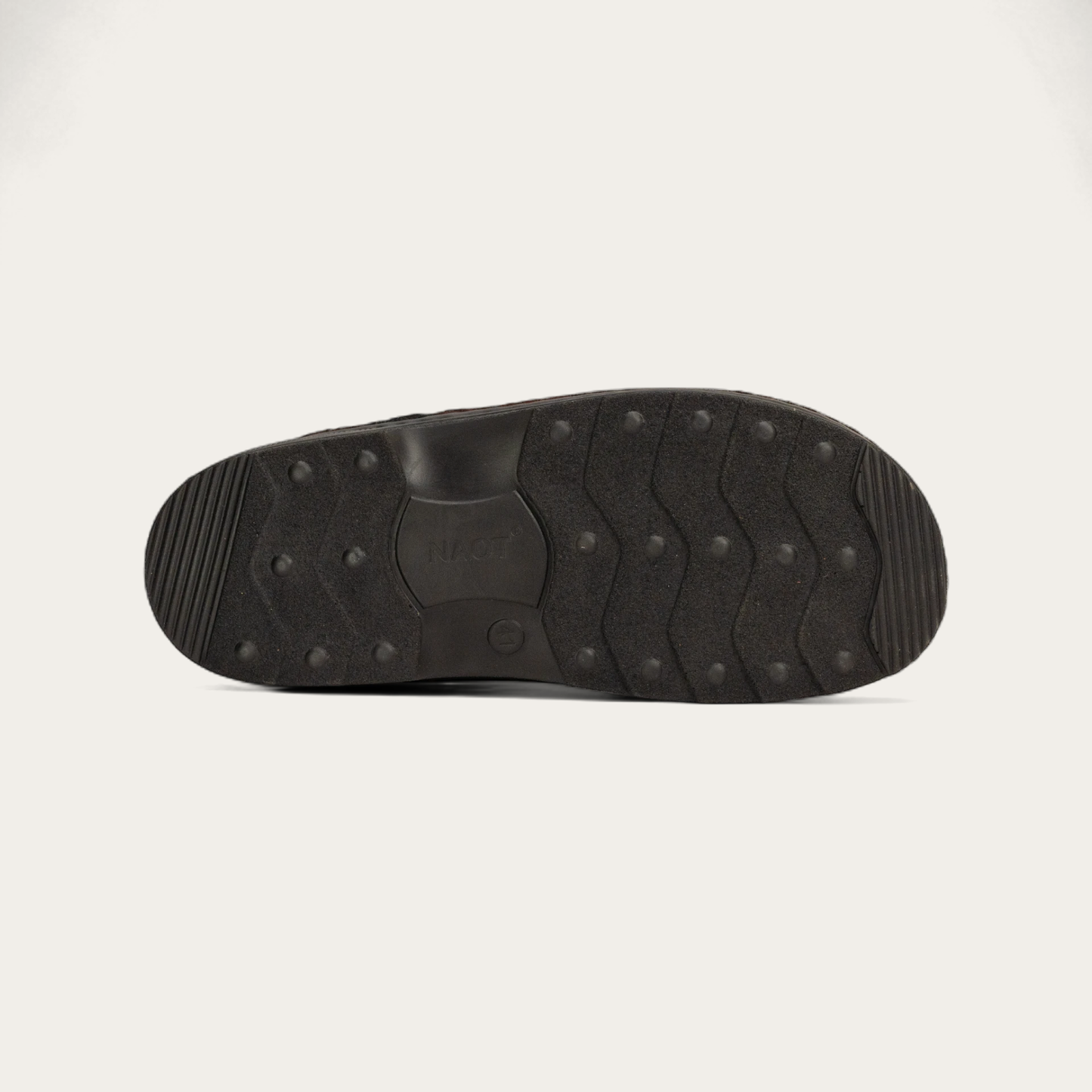 The Naot Eiger is a slip on shoe with inside gore at both sides of the instep for accessibility and a padded heel cup for extra comfort and support. This style features padded technical lining at the front which provides comfort and absorbs moisture. Naot's removable, anatomic cork and latex footbed is wrapped in pampering suede and molds to the shape of the foot with wear. The Men's Scandinavian Collection features a 1.5" polyurethane sole which is extremely lightweight, durable and slip resistant. American Podiatric Medical Association (APMA) Accepted for promoting good foot health. Our patented Naot Replacement Footbeds are also available for Eiger.