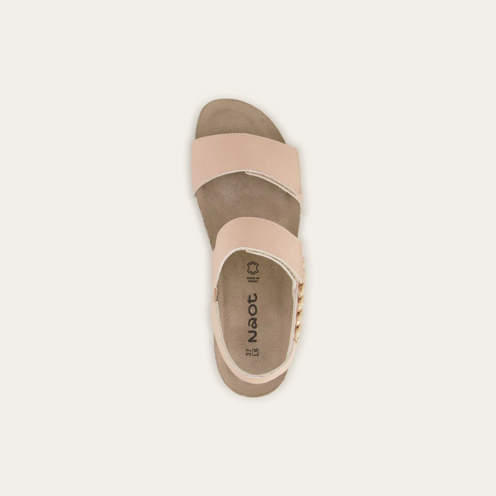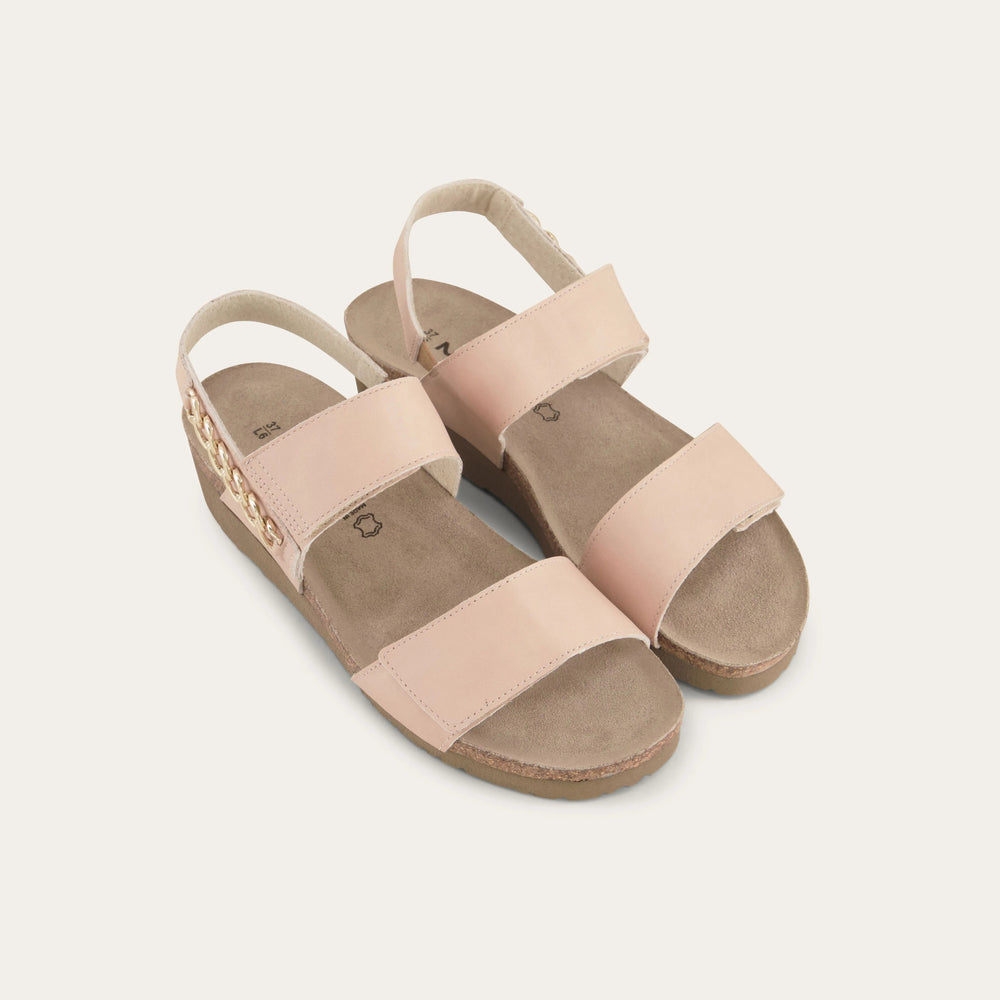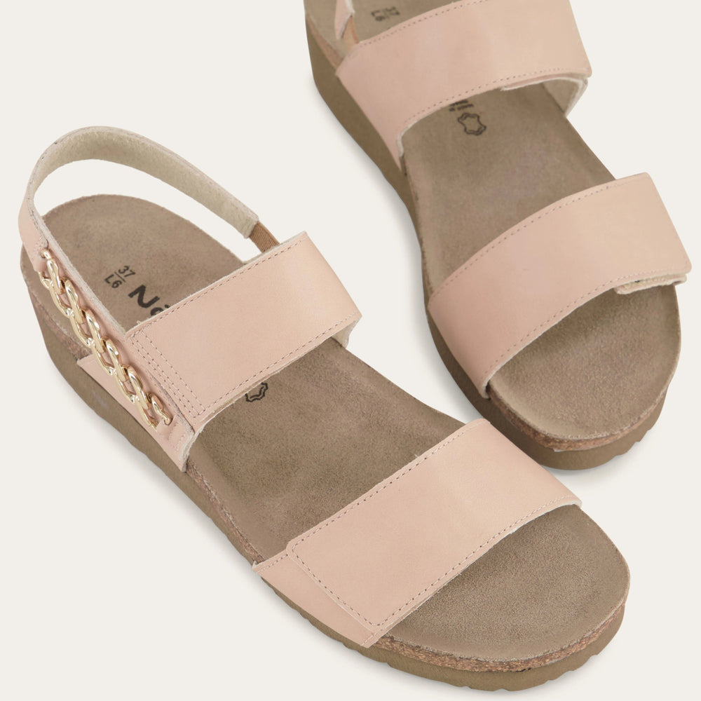A slingback sandal made with smooth leather, bold colors and curb chain hardware at strap. Eliana features double hook and loop straps allows for easy on/off. Naot's anatomic cork and latex footbed is wrapped in a pampering suede and molds to the shape of the foot with wear. American Podiatric Medical Association (APMA) Accepted for promoting good foot health.