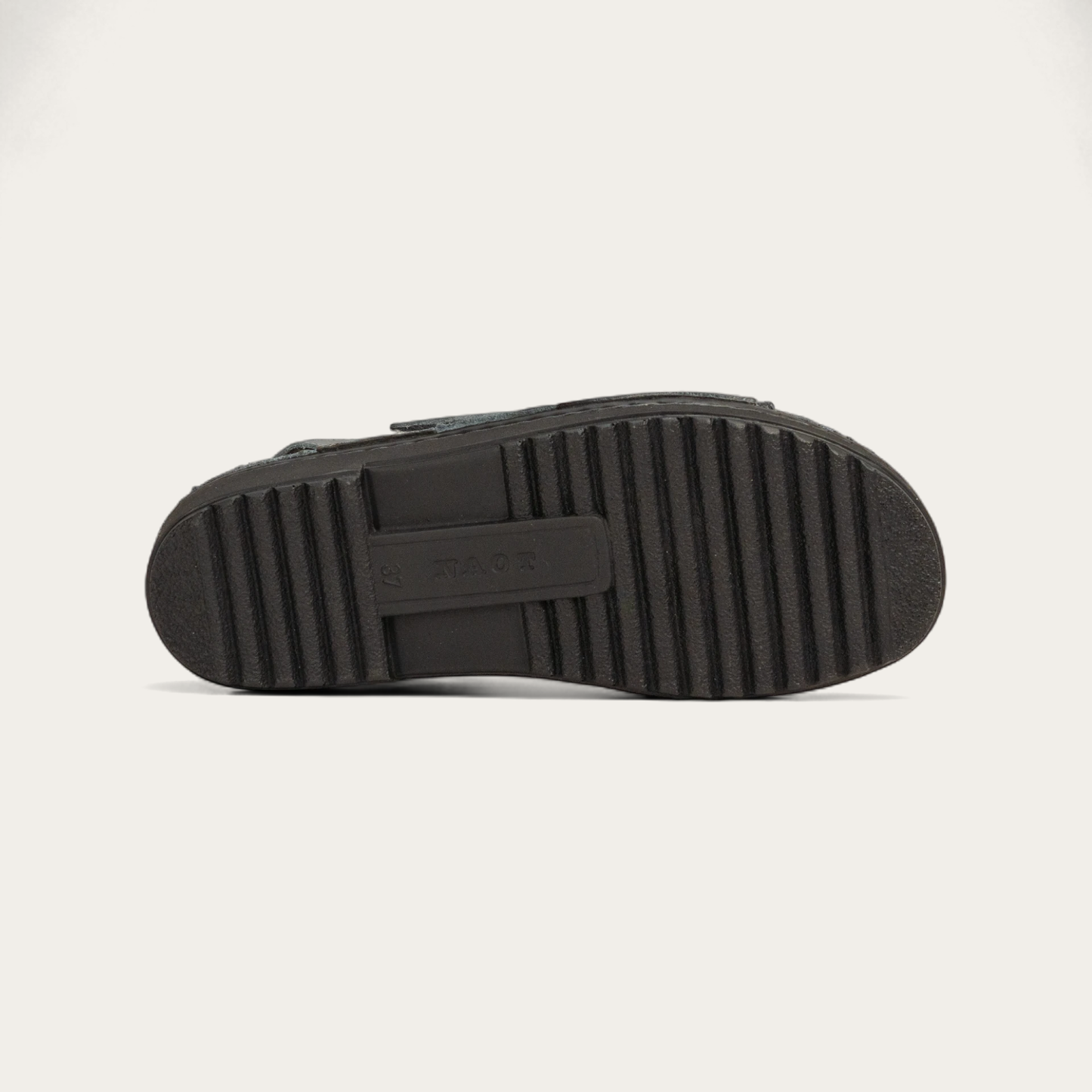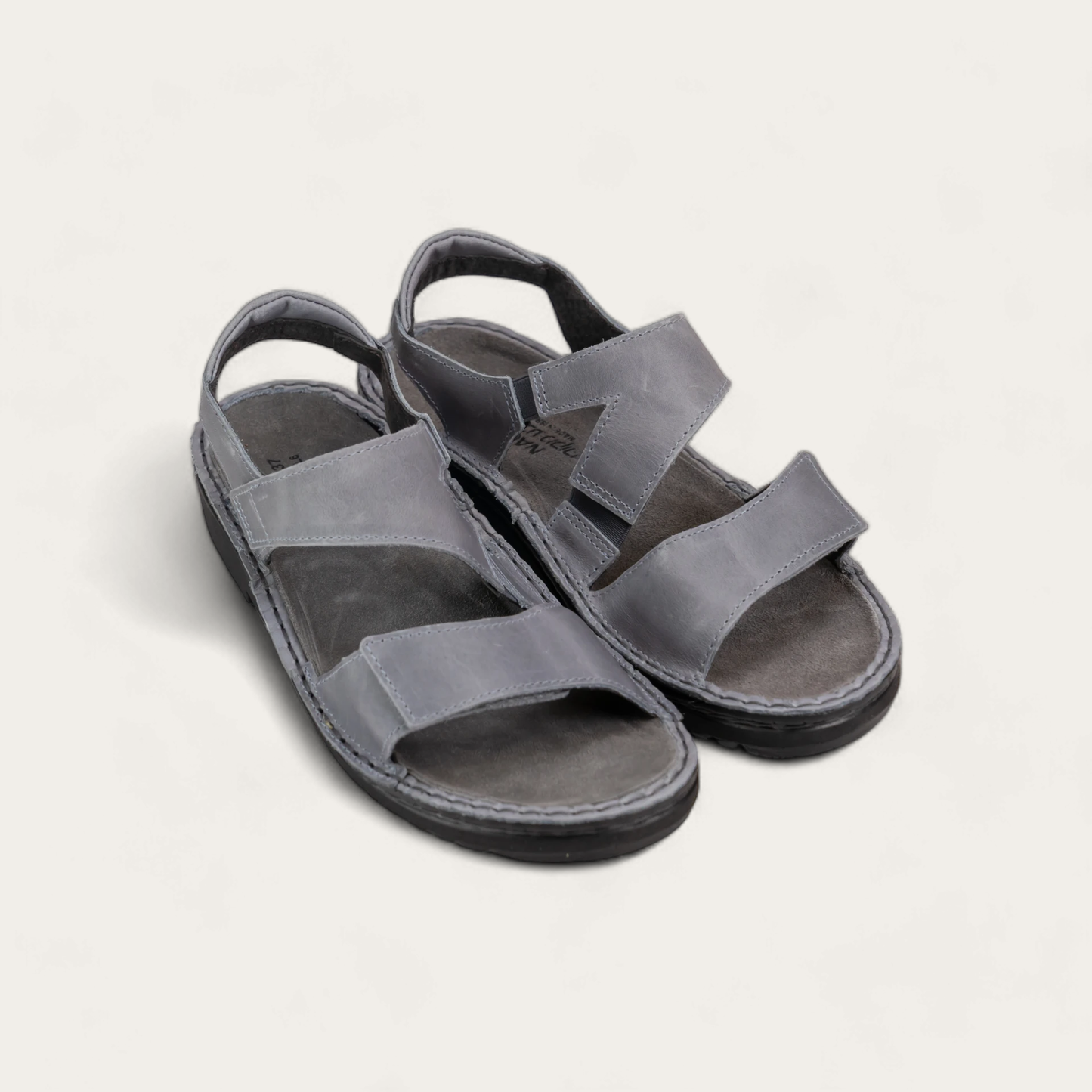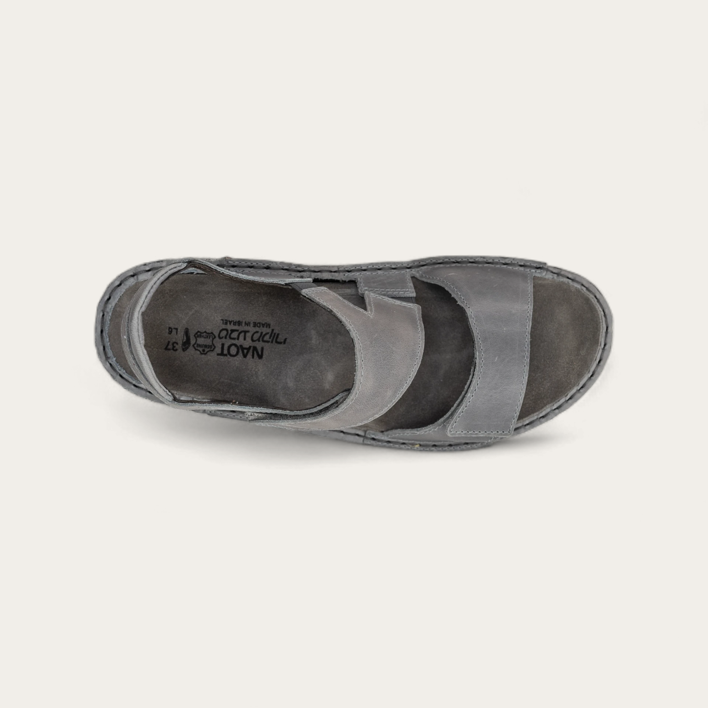 The Enid is a completely adjustable sandal with a padded backstrap. This style has a hook and loop closure at both the instep and front strap with added gore at the instep for adjustability. Naot's removable, anatomic cork and latex footbed is wrapped in pampering suede and molds to the shape of the foot with wear. The Scandinavian Collection features a 1.25" polyurethane sole which is extremely lightweight and durable. American Podiatric Medical Association (APMA) Accepted for promoting good foot health. Our patented Naot Replacement Footbeds are also available for Enid.