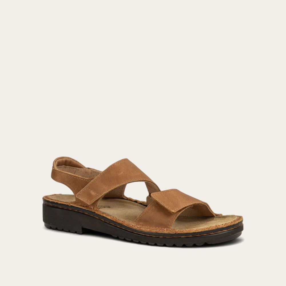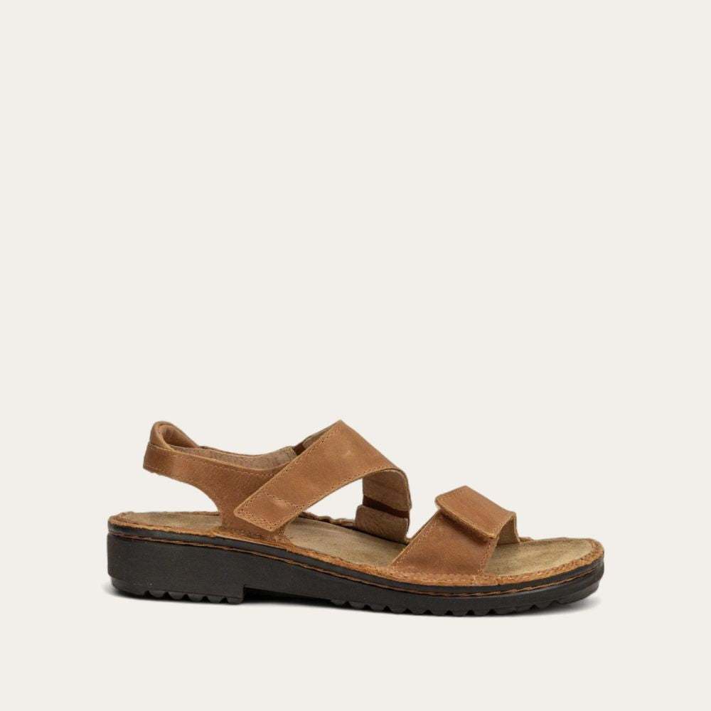 The Enid is a completely adjustable sandal with a padded backstrap. This style has a hook and loop closure at both the instep and front strap with added gore at the instep for adjustability. Naot's removable, anatomic cork and latex footbed is wrapped in pampering suede and molds to the shape of the foot with wear. The Scandinavian Collection features a 1.25" polyurethane sole which is extremely lightweight and durable. American Podiatric Medical Association (APMA) Accepted for promoting good foot health. Our patented Naot Replacement Footbeds are also available for Enid.
