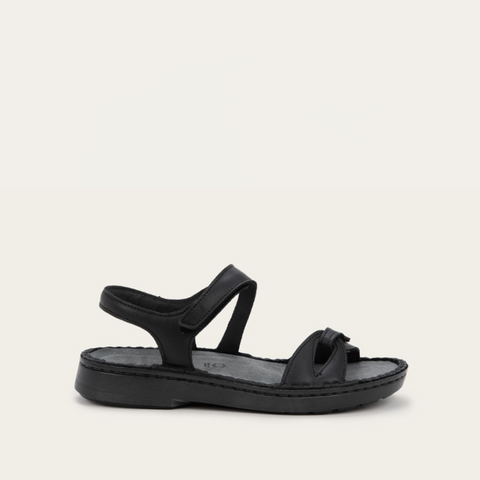 This flat backstrap sandal features plush padding and secure hook and loop closures, ensuring a snug and adjustable fit. Designed for all-day wearability, Evora combines practicality with understated sophistication, making it an essential addition to your wardrobe for any occasion.
