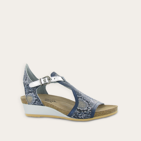 The Fiona is the perfect transitional wedge. This style features a full coverage upper with a contrasting trim. A functioning buckles creates accessibility while the padded heel cup provides comfort. Naot's anatomic cork and latex footbed is wrapped in a pampering suede and molds to the shape of the foot with wear.