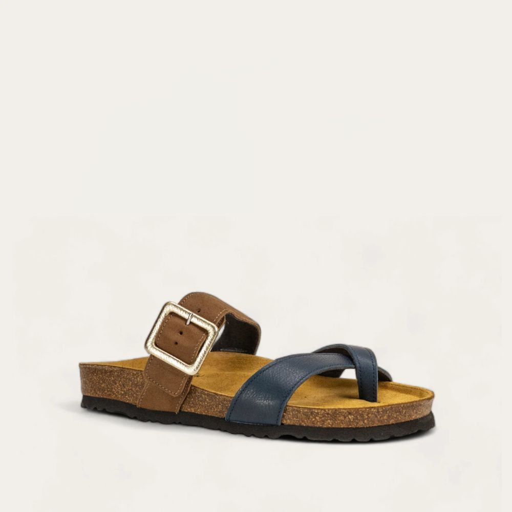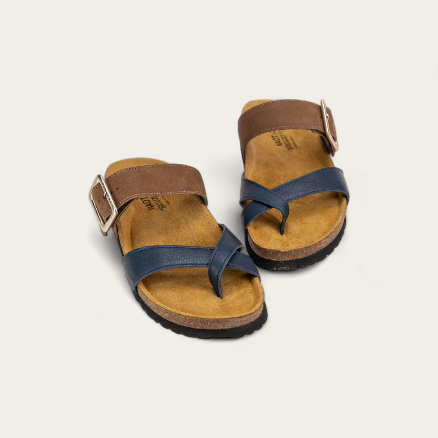 The Naot Fresno is a toe loop slide sandal featuring a contrast of leather and suede straps. With an oversized buckle that makes a statement, the Fresno also has hidden gore attached to the buckle for extra adjustability. Naot's anatomic cork and latex footbed is wrapped in a pampering suede and molds to the shape of the foot with wear. The Classic Collection features a 1.25" EVA sole. American Podiatric Medical Association (APMA) Accepted for promoting good foot health.
