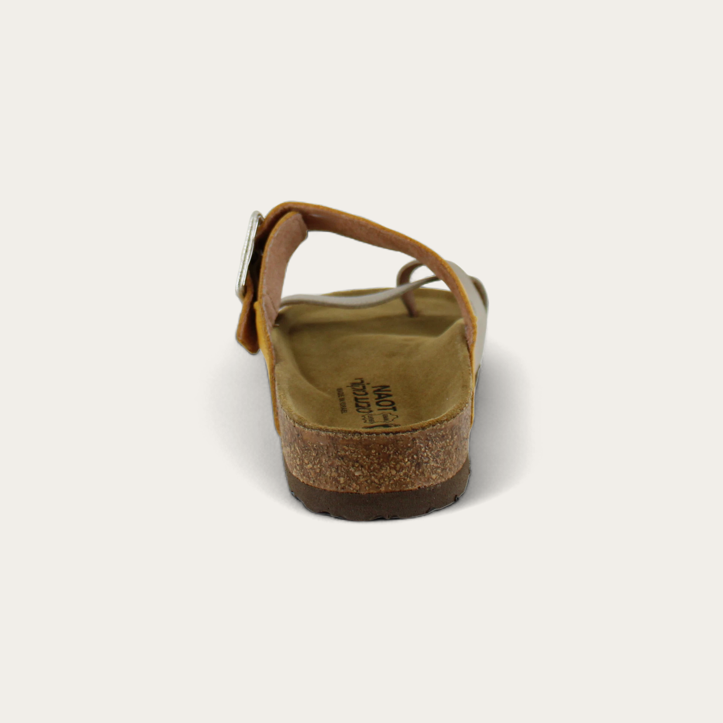 The Naot Fresno is a toe loop slide sandal featuring a contrast of leather and suede straps. With an oversized buckle that makes a statement, the Fresno also has hidden gore attached to the buckle for extra adjustability. Naot's anatomic cork and latex footbed is wrapped in a pampering suede and molds to the shape of the foot with wear. The Classic Collection features a 1.25" EVA sole. American Podiatric Medical Association (APMA) Accepted for promoting good foot health.