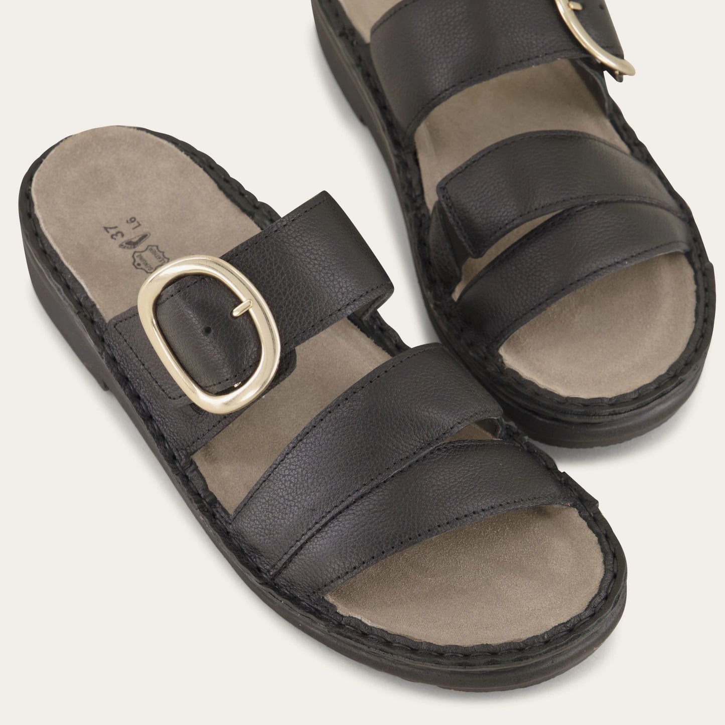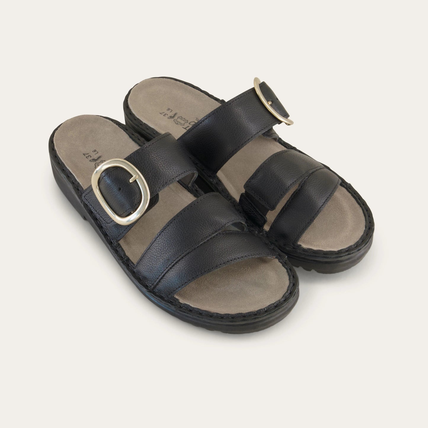 I first bought the brown Frey sandals from another retailer because they were out of stock on the Naot website. They were so comfortable that I immediately purchased the black ones on sale on the Naot website. I have several other black sandals, but when I find shoes that are comfortable and cute, I have learned to purchase while they are available. I wear a 7.5/38 shoe, and the 38 in these sandals fit perfectly.