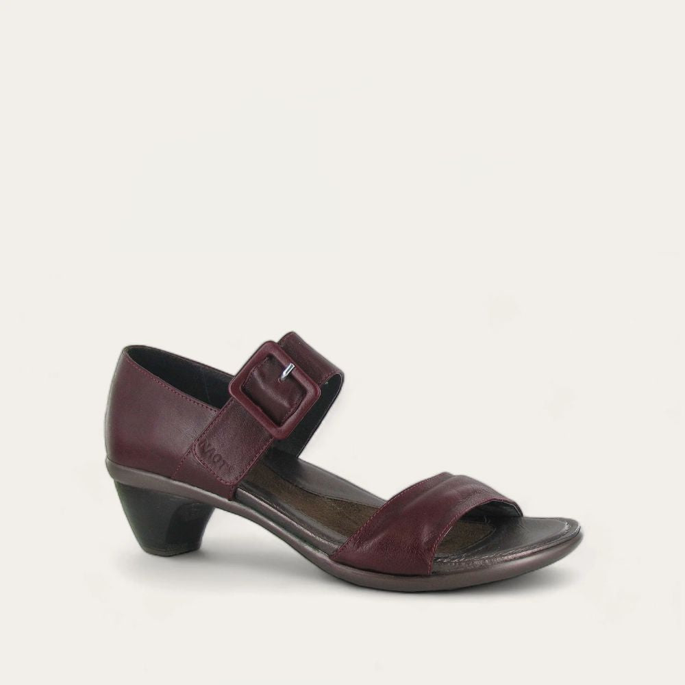 The Future sandal is a beautiful 2" heel with a unique leather design. This sandal has hidden gore at the instep for a comfortable fit. Naot's anatomic cork and latex footbed is wrapped in leather with a microfiber center to prevent slipping and molds to the shape of the foot with wear. The Avantgarde Collection features a TPR sole with a metal shank. This sole offers the look of a 2" heel without the feel. Narrow to medium fit.