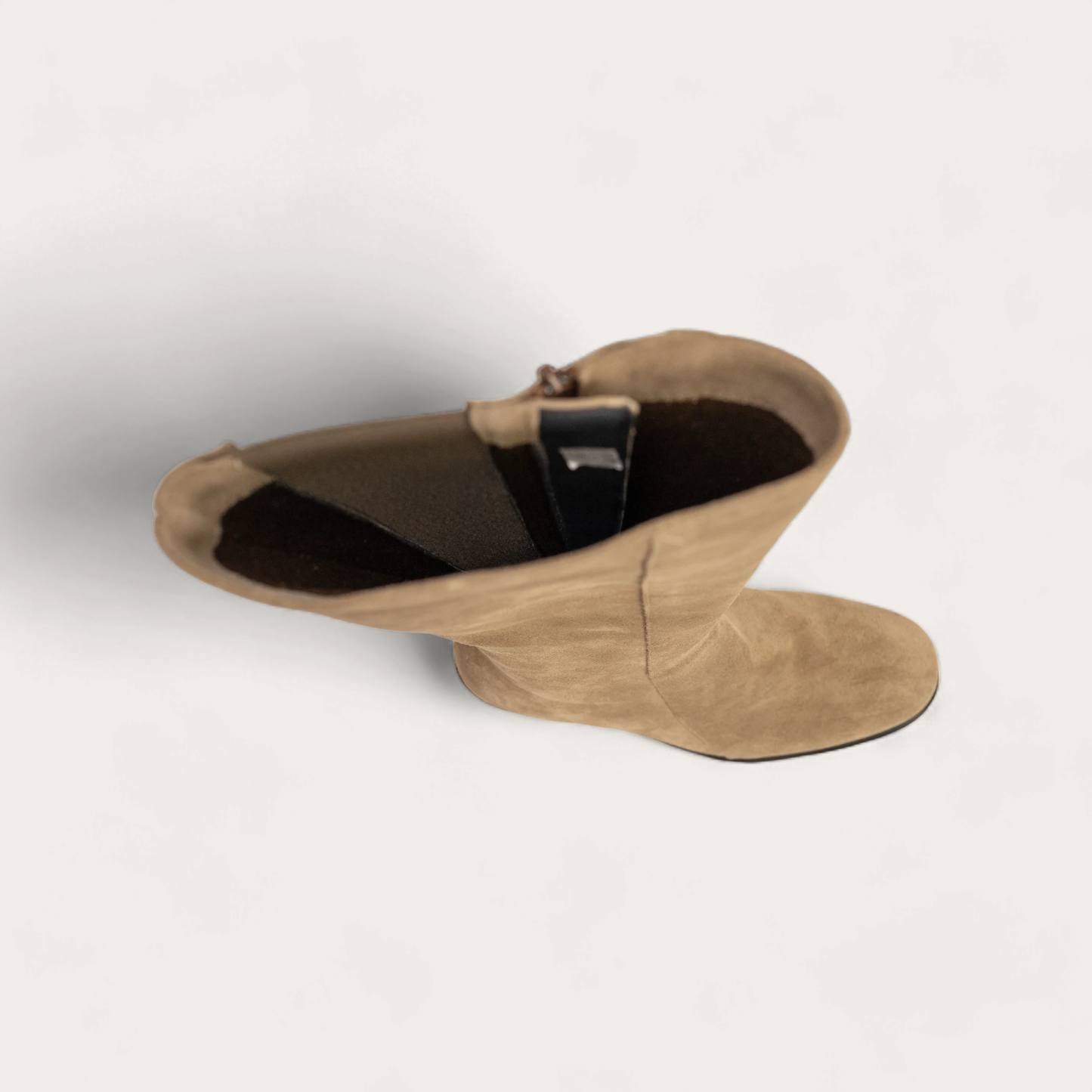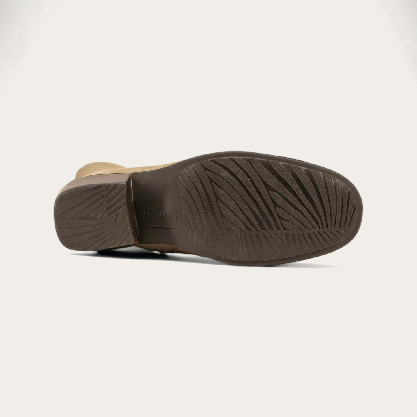 The Naot Gift is a tall boot with a 1.8" heel. This style features arch support and a metal shank. Naot's flexible, removable, anatomic cork and latex footbed is wrapped in pampering suede and molds to the shape of the foot with wear. The Heritage Collection features a 1.8" TPU sole.