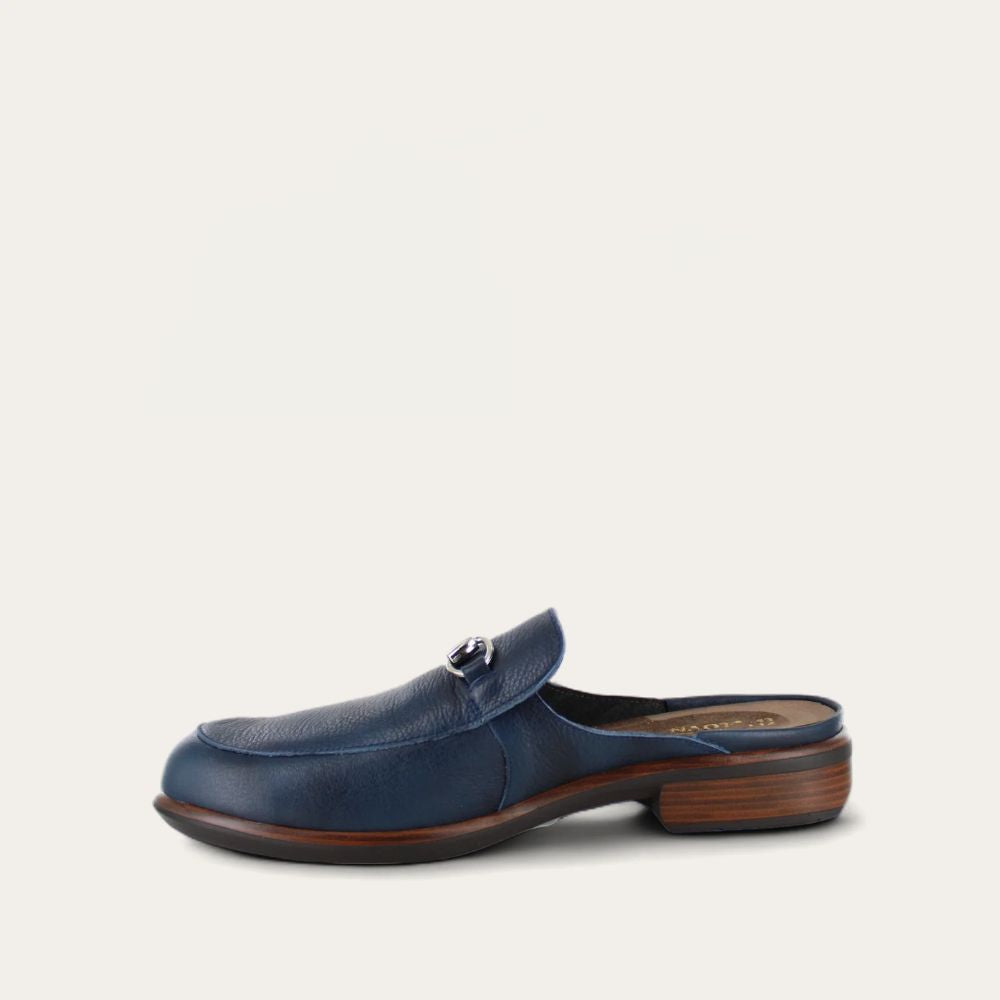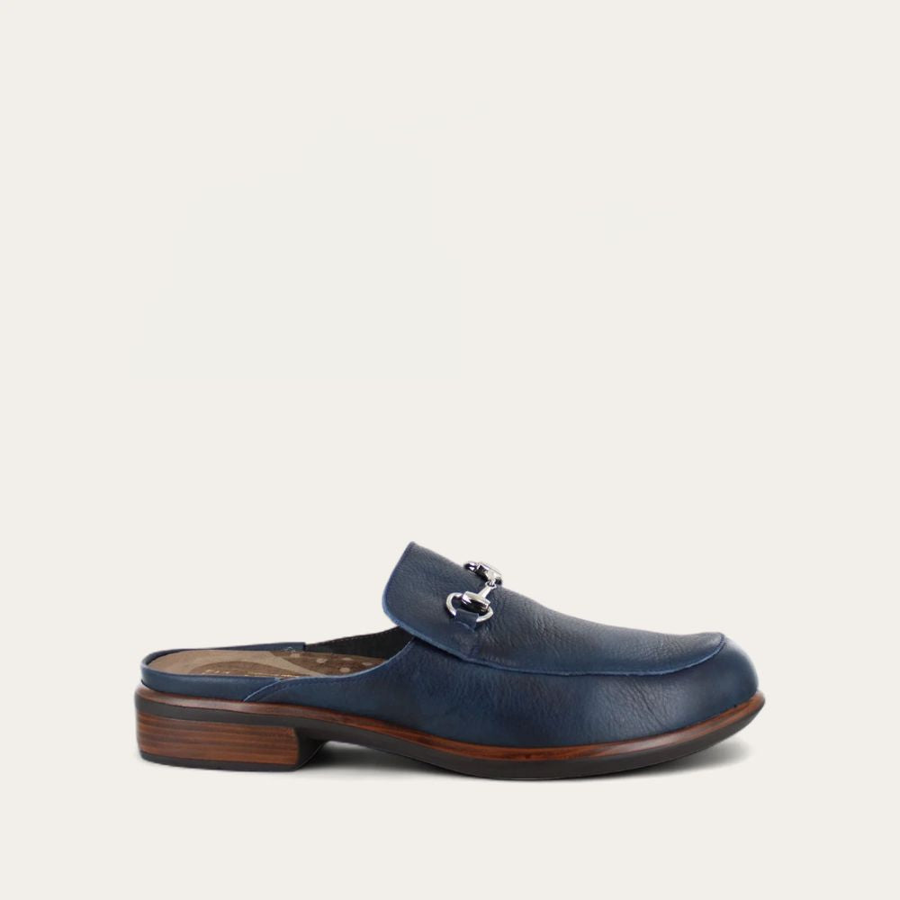 Meet the Naot Halny - your new staple clog crafted from soft, smooth leather. These loafer slides boast Naot's removable cork and latex footbed for all-day comfort. The Aura Collection offers a 1.5" anti-slip polyurethane sole and a metal shank. Hand-sewn Strobel construction ensures strength and flexibility. Step into comfort, style, and durability. Your feet will thank you! Halny fits our Aura Footbed.