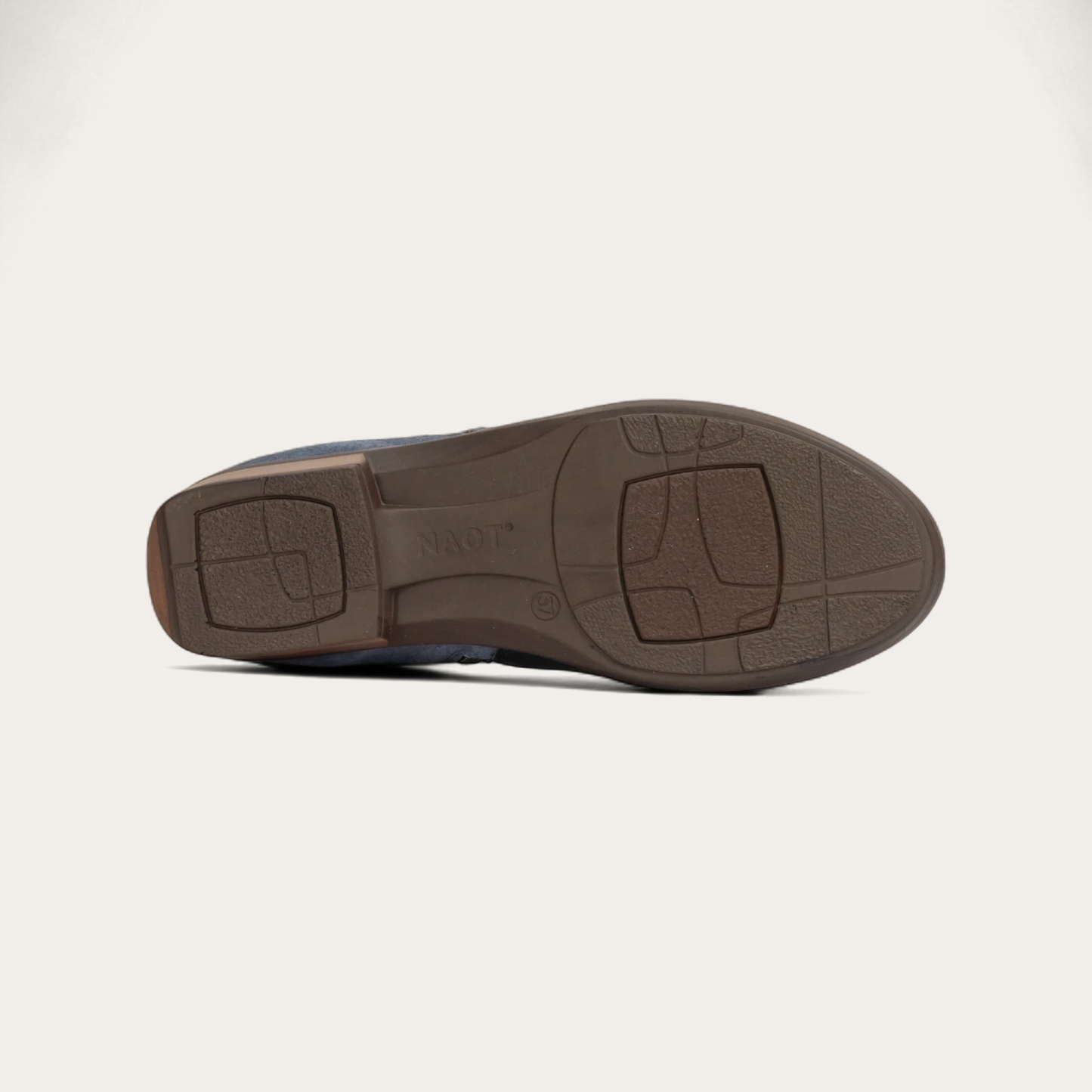 These Naot booties are my favorite shoes! So well made, beautiful style and extremely comfortable The soles are quiet and not slipping. The whole shoe just feels rich. I have them in Acorn, navy and black!