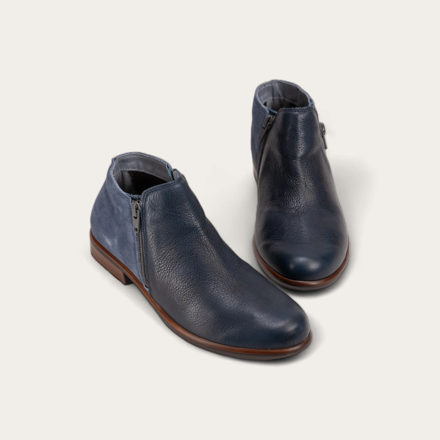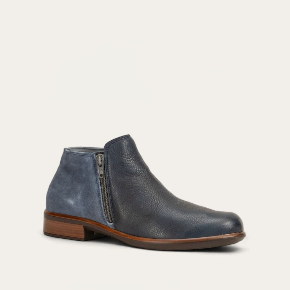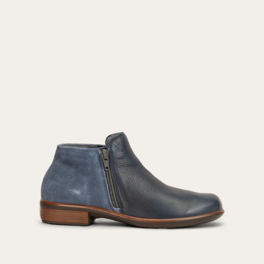 Meet the Naot Helm one of our most loved boots! With double zippers for easy access, it's all about convenience and style. But that's not all. Enjoy the padded heel cup and instep for that extra dose of comfort. Plus, say hello to cozy warmth and moisture absorption with padded technical lining. Let's talk about the footbed! Naot's removable, anatomic cork and latex footbed is like a hug for your feet, molding perfectly with every wear. The Aura Collection's 1.5" polyurethane sole with a metal shank ensures lightweight durability and slip prevention. Step into comfort and confidence today. Our patented Naot Replacement Footbeds are also available for Helm.