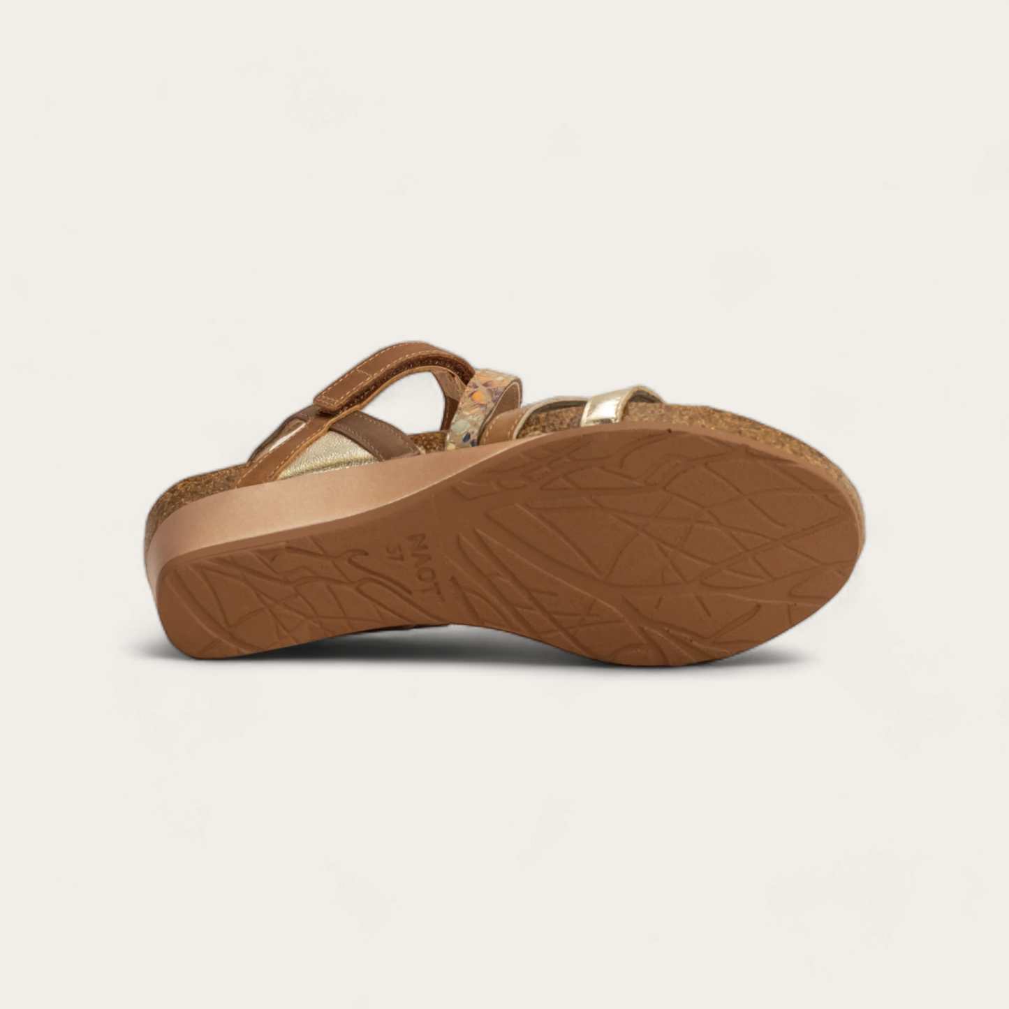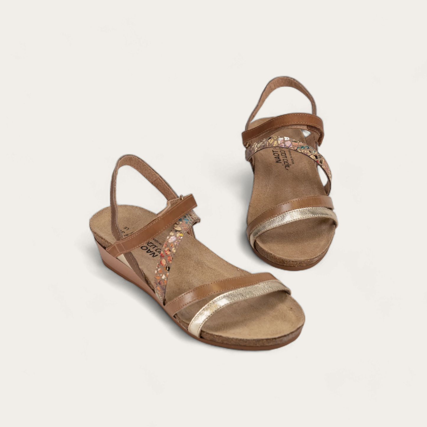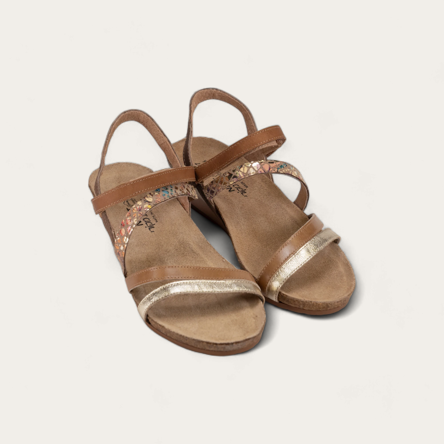 The Hero wedge sandal is offered in a multitude of fun, colorful hues and can be dressed up or down. A gore strap at the instep allows for ease of wear while a hook and loop closure at the instep allows for easy on/off. Leather lining allows for extra comfort while Naot's anatomic cork and latex footbed is wrapped in a pampering suede and molds to the shape of the foot with wear.