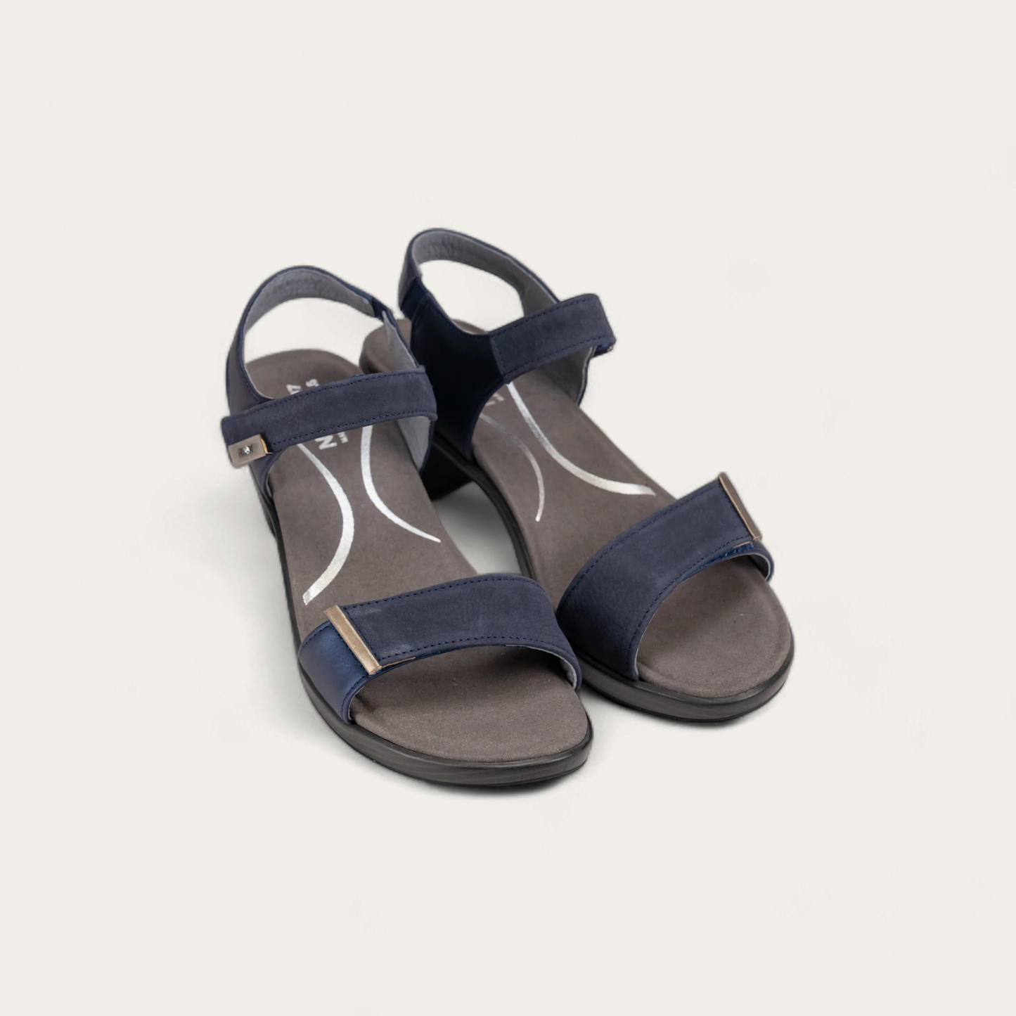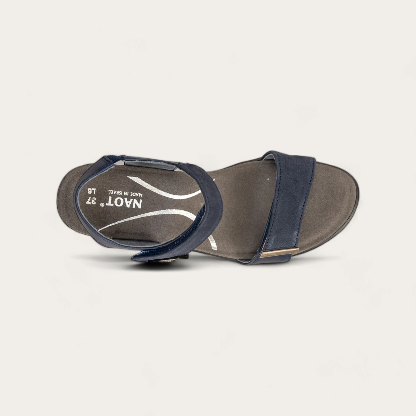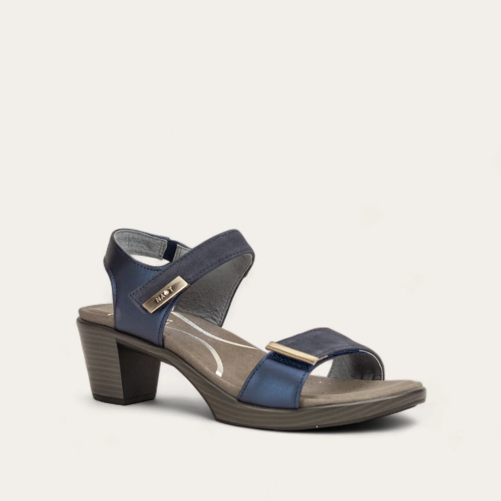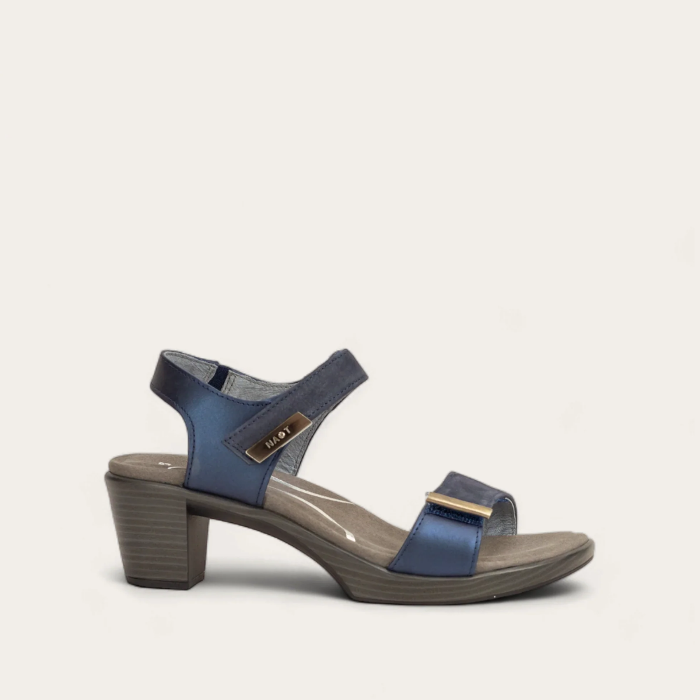 The Intact is a fashionable heel that features double hook and loop straps for complete adjustability. The Intact provides a dressier look. Naot's anatomic cork and latex footbed is wrapped in pampering suede and molds to the shape of the foot with wear. The Supreme Collection features a metal shank and provides the look of a 2.25" heel without the feel.