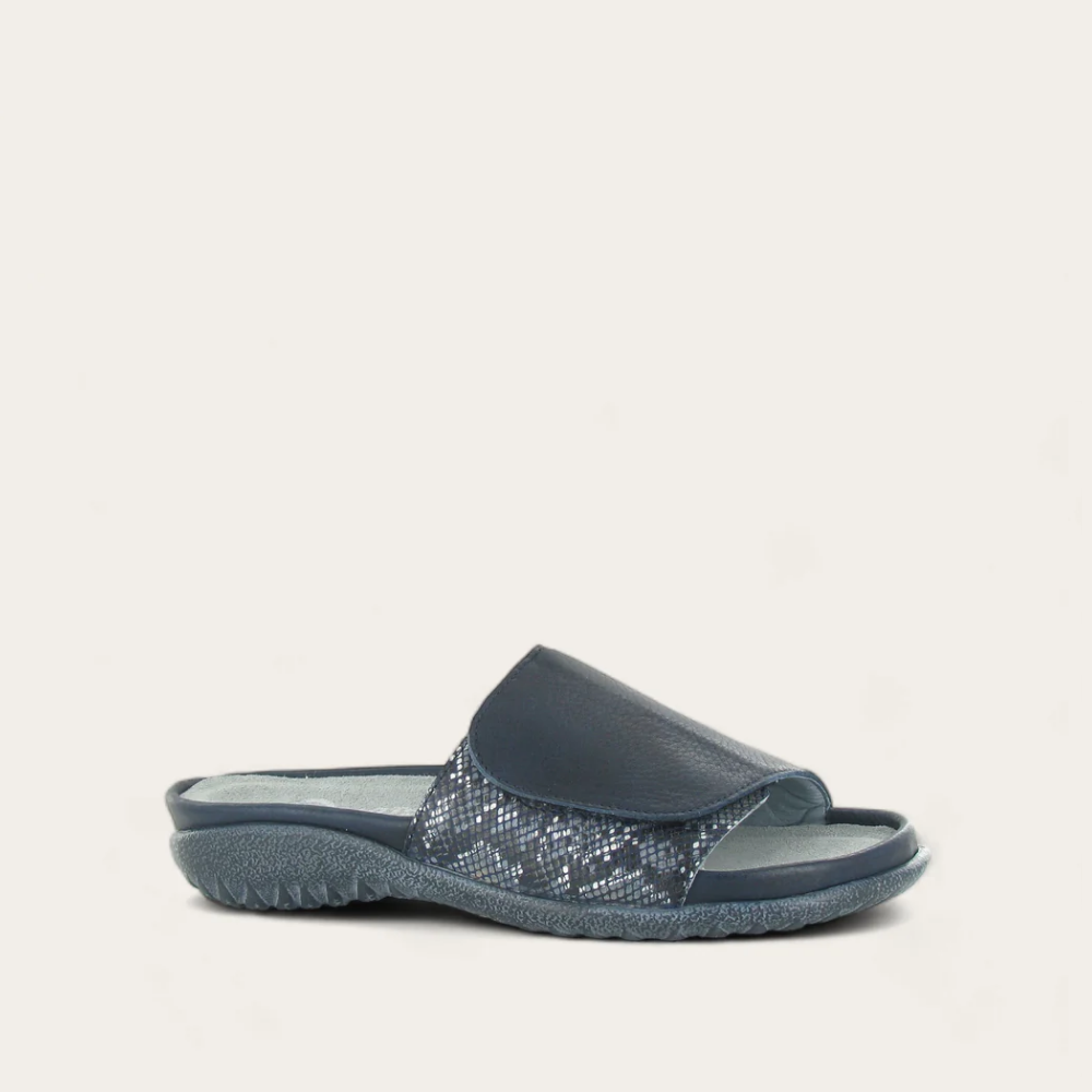 The Ipo is the perfect everyday slip on sandal. The Ipo has a removable cork and latex footbed and features velcro for an easy slip on. A 1" polyurethane sole which is extremely lightweight, durable and slip resistant. This collection uses a hand-sewn Strobel construction making it strong and extremely flexible. American Podiatric Medical Association (APMA) Accepted for promoting good foot health. Our patented Naot Replacement Footbeds are also available for Ipo.