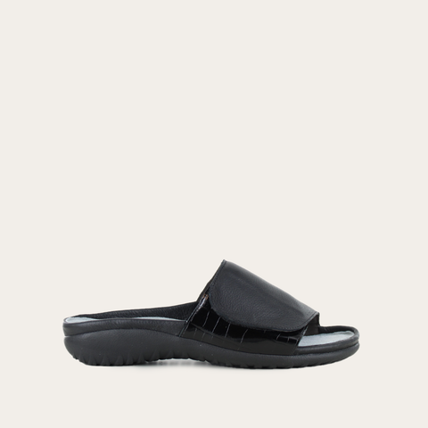 The Ipo is the perfect everyday slip on sandal. The Ipo has a removable cork and latex footbed and features velcro for an easy slip on. A 1" polyurethane sole which is extremely lightweight, durable and slip resistant. This collection uses a hand-sewn Strobel construction making it strong and extremely flexible. American Podiatric Medical Association (APMA) Accepted for promoting good foot health. Our patented Naot Replacement Footbeds are also available for Ipo.