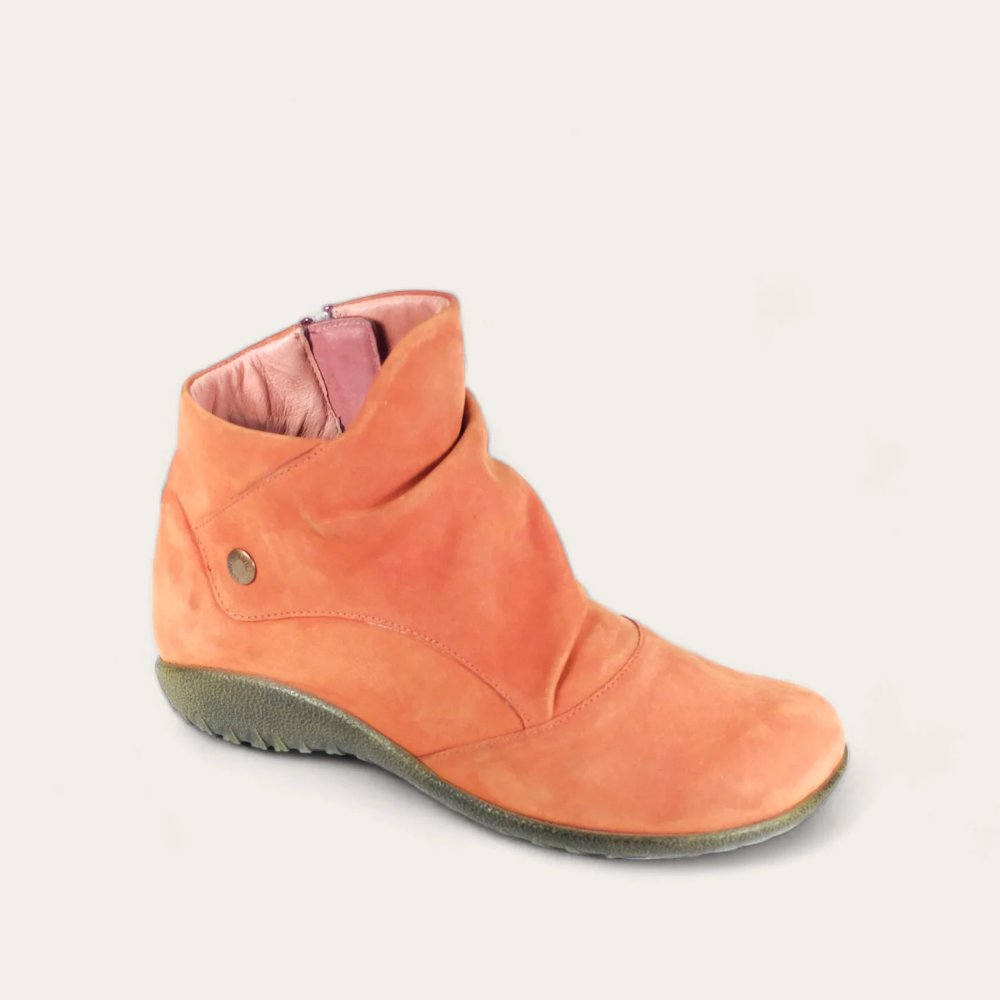 The sleekly designed and strongly built Kahika is the perfect bootie for any fall day, as it delivers a fashionable look that goes with any outfit. Beyond glamour, the Kahika has Naot's removable, anatomic cork and latex footbed, which is wrapped in pampering suede and molds to the shape of the foot with wear. The Koru Collection features a 1" polyurethane sole which is extremely lightweight, durable and slip resistant. This collection uses a hand-sewn Strobel construction making it strong and extremely flexible. American Podiatric Medical Association (APMA) Accepted for promoting good foot health.