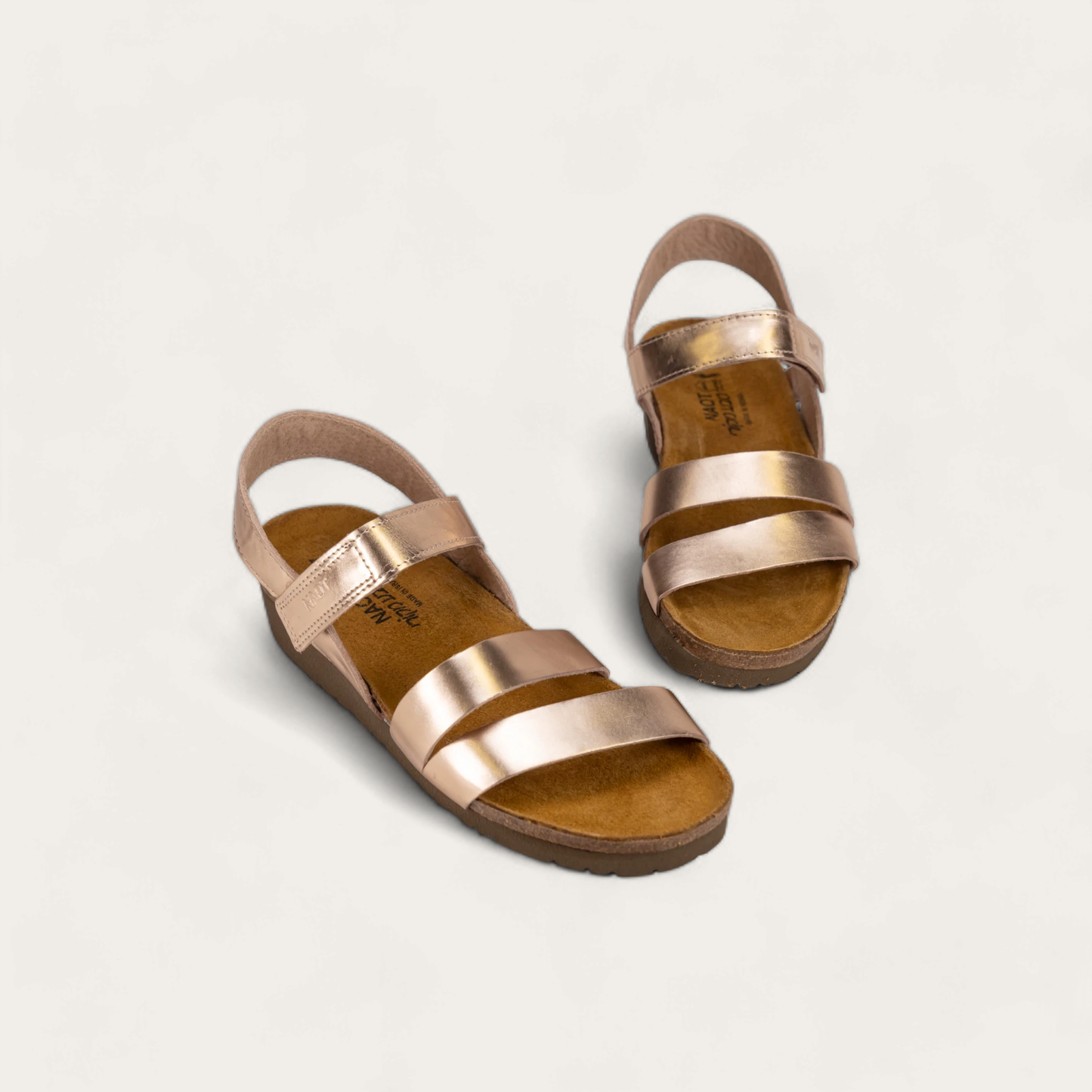 Meet Kayla it's your new go-to sandal for unbeatable comfort and style! With three supportive straps, a hook and loop strap at the instep, and a backstrap for stability, it's all about giving your feet the best. The magic? Naot's anatomic cork and latex footbed it's a spa day for your feet, wrapped in suede that molds to your unique shape over time. The Kayla Wide is also available so you can find your perfect fit. Shop now and treat your feet right! Bonus: The American Podiatric Medical Association (APMA) gives it a thumbs up for promoting good foot health. Trust us, your feet will thank you!