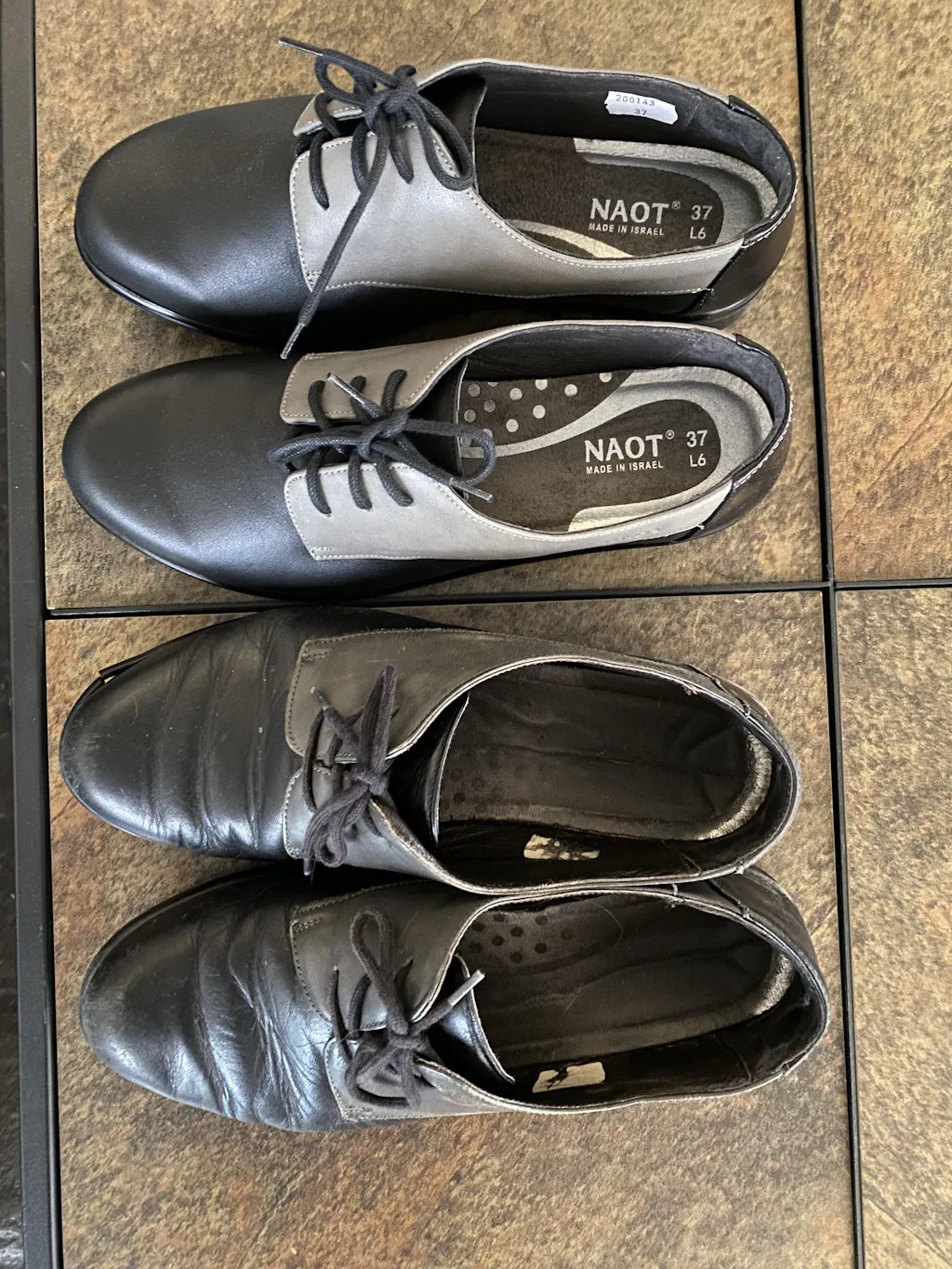 The Naot Kedma is a flat lace up shoe with contrasting leathers. This style has a heel cup for stability and support. Naot's removable, anatomic cork and latex footbed is wrapped in microfiber and leather and molds to the shape of the foot with wear. The Aura Collection features a 1.5" polyurethane sole with a metal shank which is extremely lightweight, durable and abrasive to prevent slipping. This collection uses a hand-sewn Strobel construction making it strong and extremely flexible. Our patented Naot Replacement Footbeds are also available for Kedma.