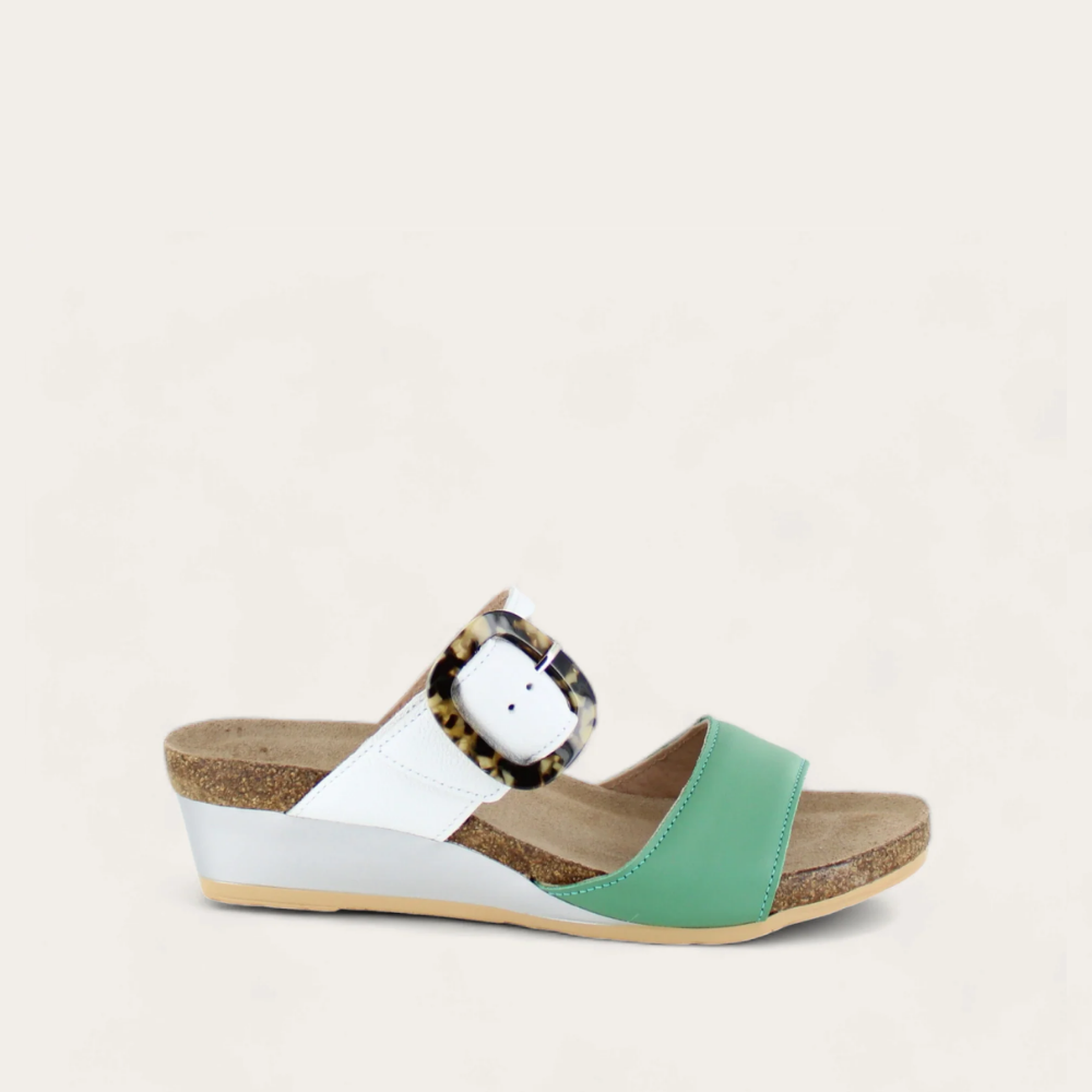 The Kingdom sandal is perfect for day or night with a fashionable oversized buckle. Naot's anatomic cork and latex footbed is wrapped in a pampering suede and molds to the shape of the foot with wear.