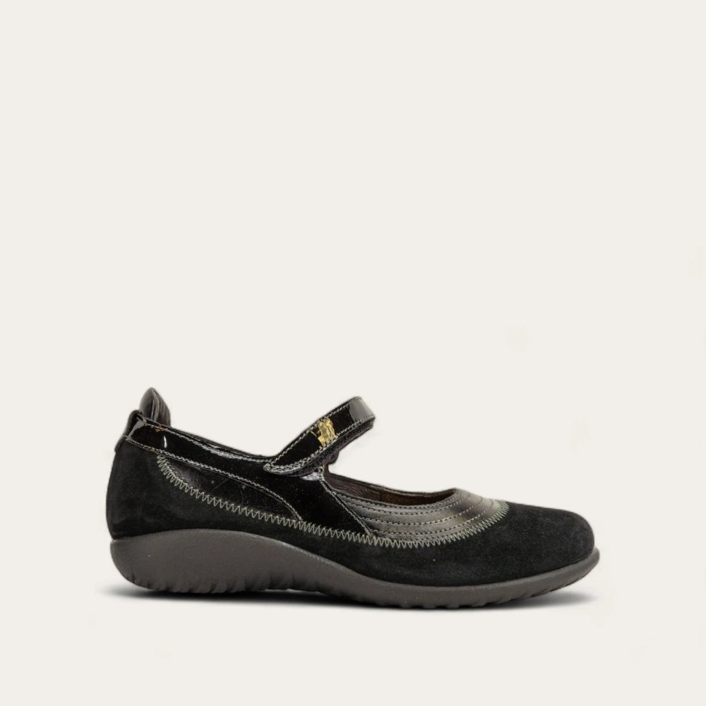 The Kirei is a vibrant, fashionable maryjane shoe. This style has a padded heel cup for stability and comfort and a hook and loop closure at the instep for adjustability. The front portion of the Kirei features padded technical lining which provides comfort and absorbs moisture. Naot's removable, anatomic cork and latex footbed is wrapped in pampering suede and molds to the shape of the foot with wear. The Koru Collection features a 1" polyurethane sole which is extremely lightweight, durable and slip resistant. This collection uses a hand-sewn Strobel construction making it strong and extremely flexible. Also available in wide width, shop now. American Podiatric Medical Association (APMA) Accepted for promoting good foot health. Kirei fits our patented Koru Footbed.