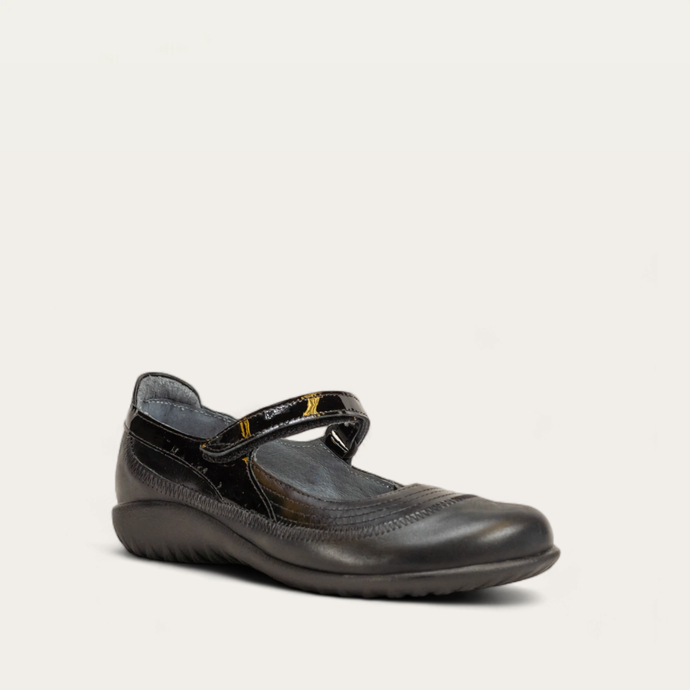 The Kirei is a vibrant, fashionable maryjane shoe. This style has a padded heel cup for stability and comfort and a hook and loop closure at the instep for adjustability. The front portion of the Kirei features padded technical lining which provides comfort and absorbs moisture. Naot's removable, anatomic cork and latex footbed is wrapped in pampering suede and molds to the shape of the foot with wear. The Koru Collection features a 1" polyurethane sole which is extremely lightweight, durable and slip resistant. This collection uses a hand-sewn Strobel construction making it strong and extremely flexible. Also available in wide width, shop now. American Podiatric Medical Association (APMA) Accepted for promoting good foot health. Kirei fits our patented Koru Footbed.