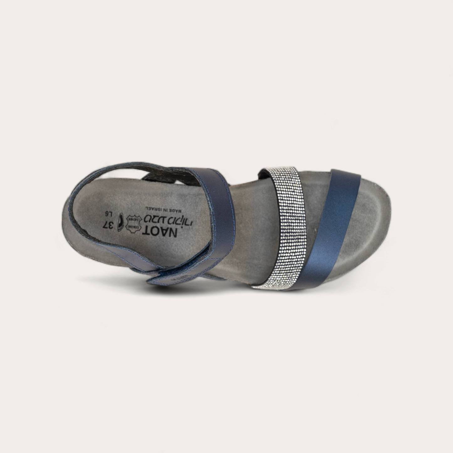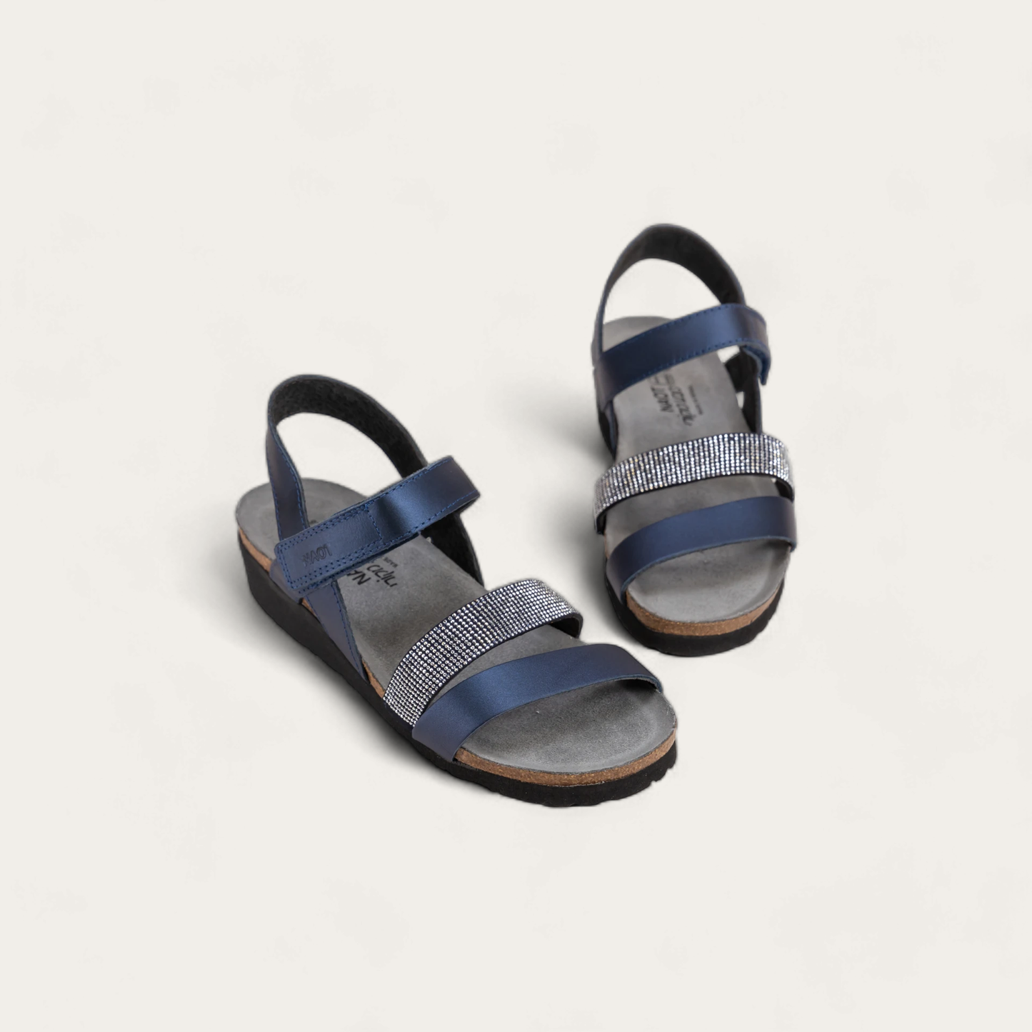 The Krista is a three-strap sandal with a hook and loop strap at the instep and a backstrap for added stability and support. The Krista has gore at the middle strap for adjustability. This style features a studded strap to give it a dressier look. Naot's anatomic cork and latex footbed is wrapped in a pampering suede and molds to the shape of the foot with wear. American Podiatric Medical Association (APMA) Accepted for promoting good foot health.