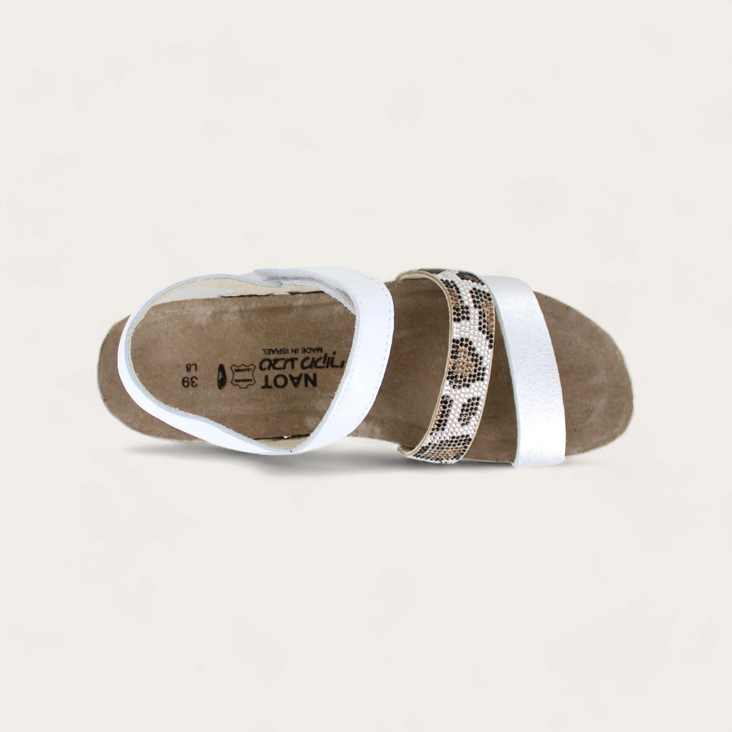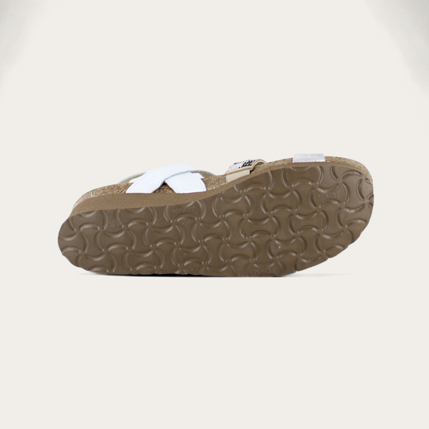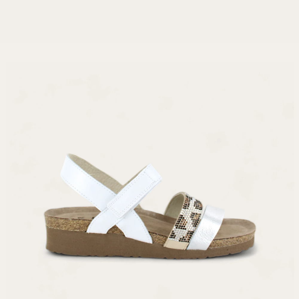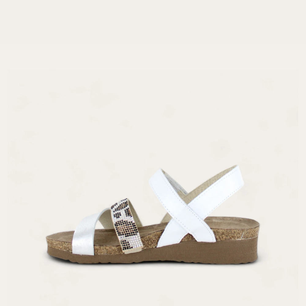 The Krista is a three-strap sandal with a hook and loop strap at the instep and a backstrap for added stability and support. The Krista has gore at the middle strap for adjustability. This style features a studded strap to give it a dressier look. Naot's anatomic cork and latex footbed is wrapped in a pampering suede and molds to the shape of the foot with wear. American Podiatric Medical Association (APMA) Accepted for promoting good foot health.
