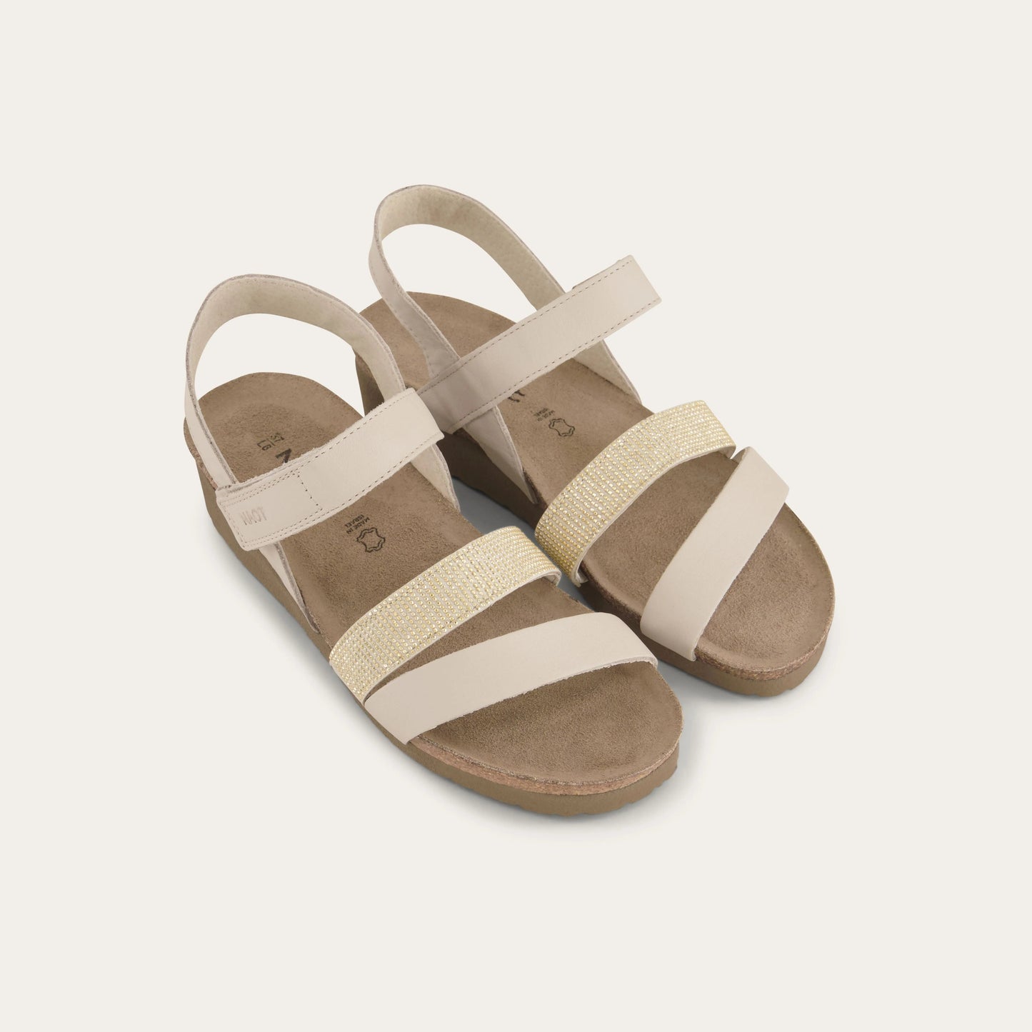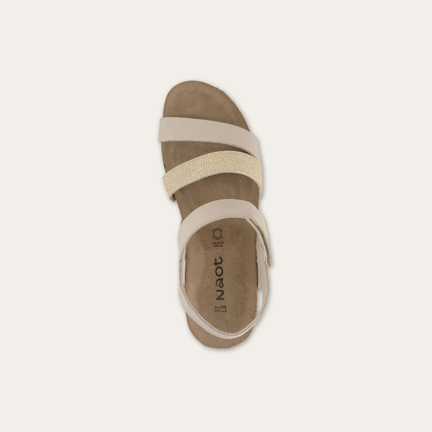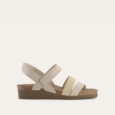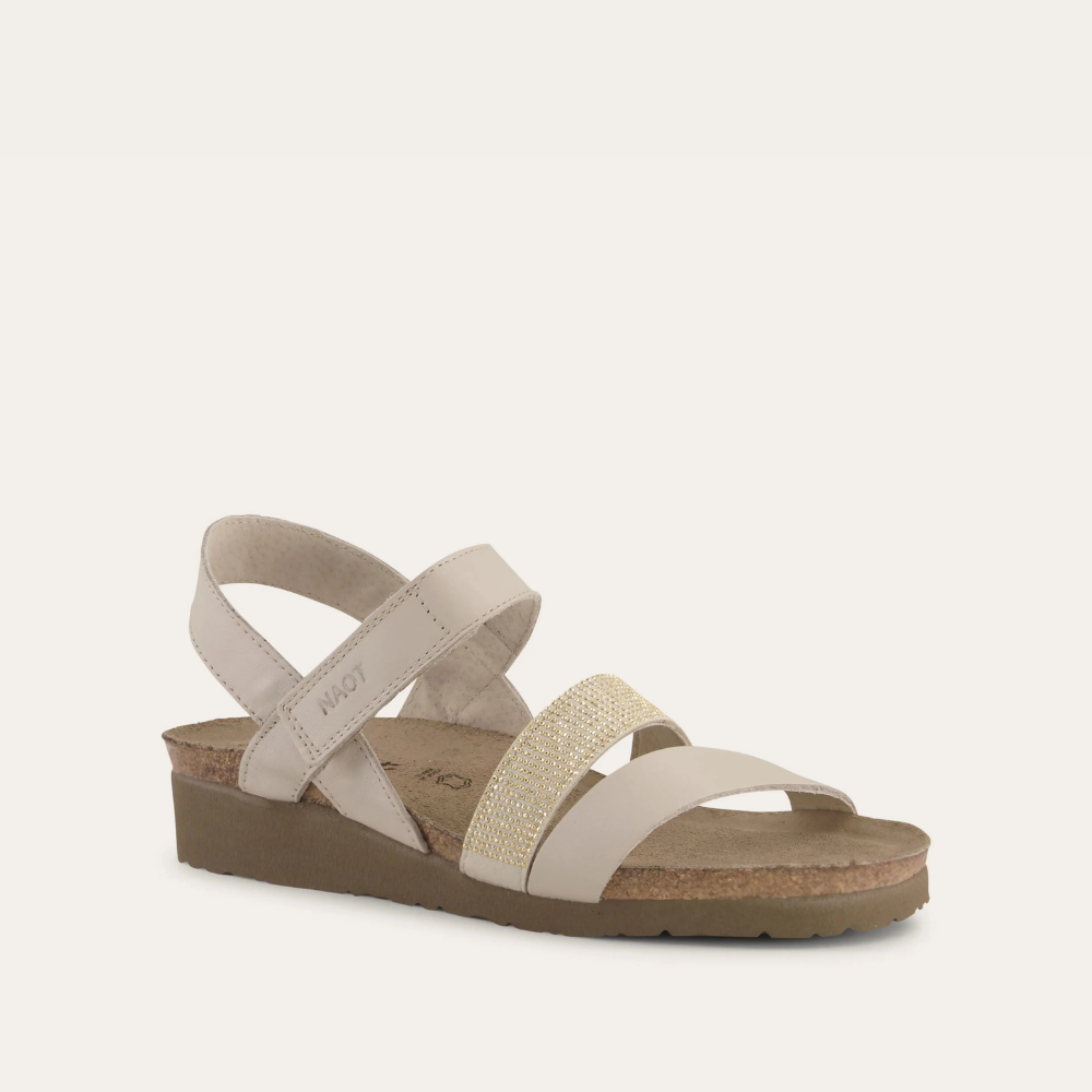 The Krista is a three-strap sandal with a hook and loop strap at the instep and a backstrap for added stability and support. The Krista has gore at the middle strap for adjustability. This style features a studded strap to give it a dressier look. Naot's anatomic cork and latex footbed is wrapped in a pampering suede and molds to the shape of the foot with wear. American Podiatric Medical Association (APMA) Accepted for promoting good foot health.