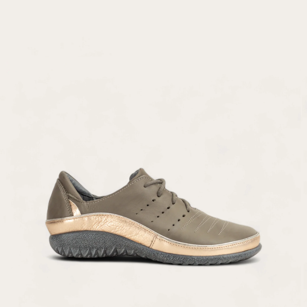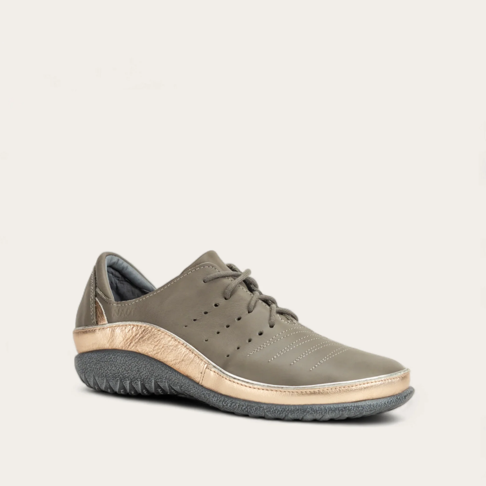 The Kumara is a great, everyday lace up shoe. This style has a slightly padded tongue and a padded heel cup for additional stability and comfort. The front portion of the Kumara features padded technical lining which provides comfort and absorbs moisture. Naot's removable, anatomic cork and latex footbed is wrapped in pampering suede and molds to the shape of the foot with wear. The Koru Collection features a 1" polyurethane sole which is extremely lightweight, durable and slip resistant. This collection uses a hand-sewn Strobel construction making it strong and extremely flexible. American Podiatric Medical Association (APMA) Accepted for promoting good foot health. Our patented Naot Replacement Footbeds are also available for Kumara.
