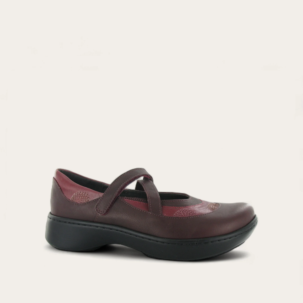 The Lagos is a fashionable maryjane with a hook and loop and contrasting leathers. This style has gore at instep for adjustability and stretch at outside. Naot's removable, anatomic cork and latex footbed is wrapped in pampering suede and molds to the shape of the foot with wear. The Shell Collection features a 1.5" polyurethane sole which is extremely lightweight, durable and slip resistant. Our patented Naot Replacement Footbeds are also available for Lagos.