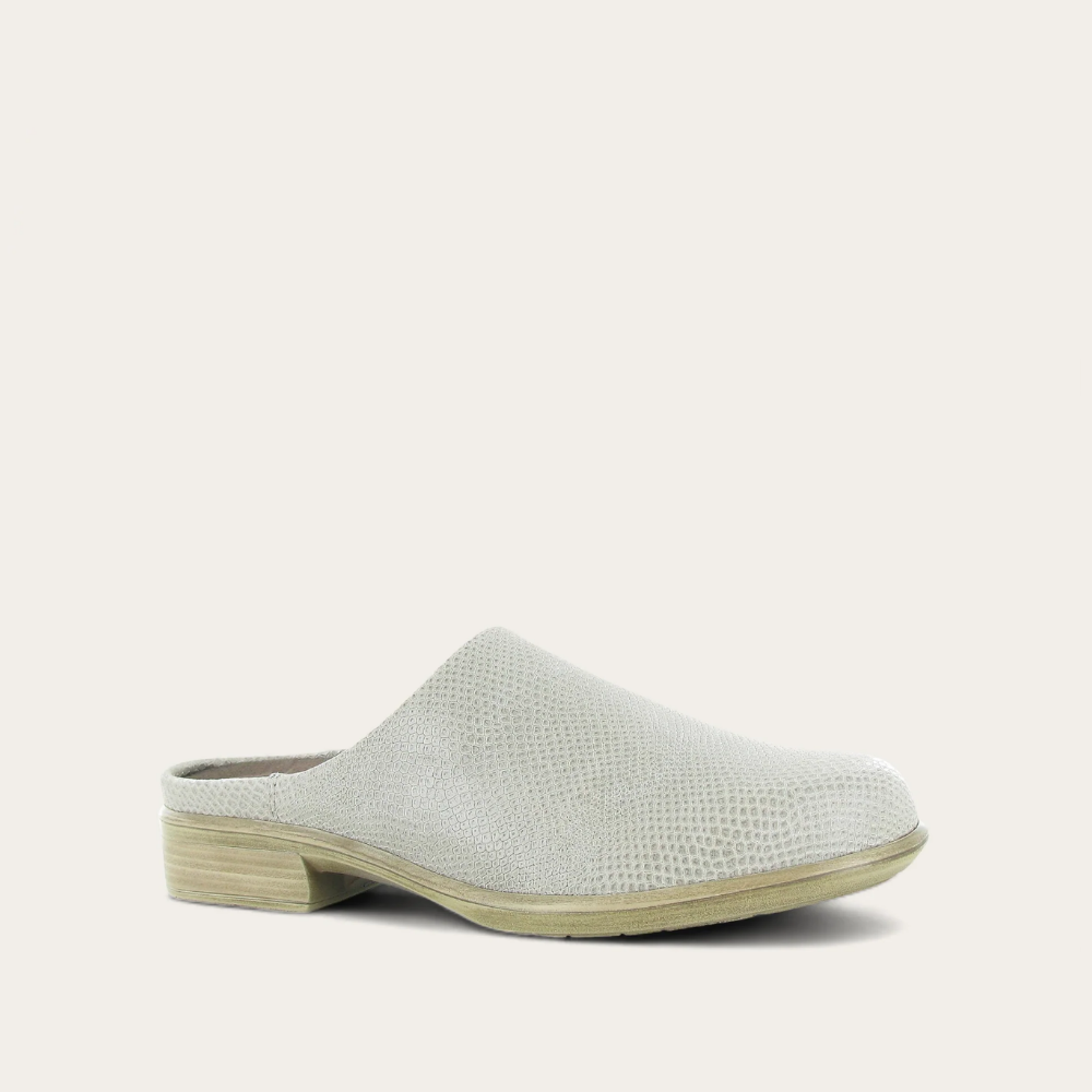 The Lodos is the perfect mule to transition between seasons. The classic clog can elevate any look. The Lodos comes with Naot's removable, anatomic cork and latex footbed for all day comfort. The Aura Collection features a 1.5" polyurethane sole with a metal shank which is extremely lightweight, durable and abrasive to prevent slipping. This collection uses a hand-sewn Strobel construction making it strong and extremely flexible. Lodos fits our Aura Footbed.