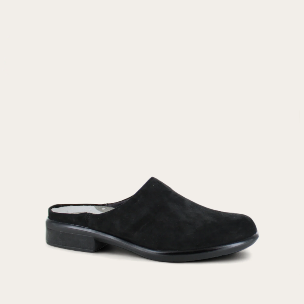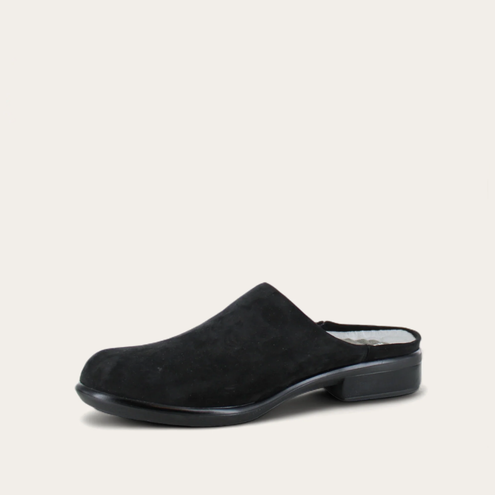 The Lodos is the perfect mule to transition between seasons. The classic clog can elevate any look. The Lodos comes with Naot's removable, anatomic cork and latex footbed for all day comfort. The Aura Collection features a 1.5" polyurethane sole with a metal shank which is extremely lightweight, durable and abrasive to prevent slipping. This collection uses a hand-sewn Strobel construction making it strong and extremely flexible. Lodos fits our Aura Footbed.