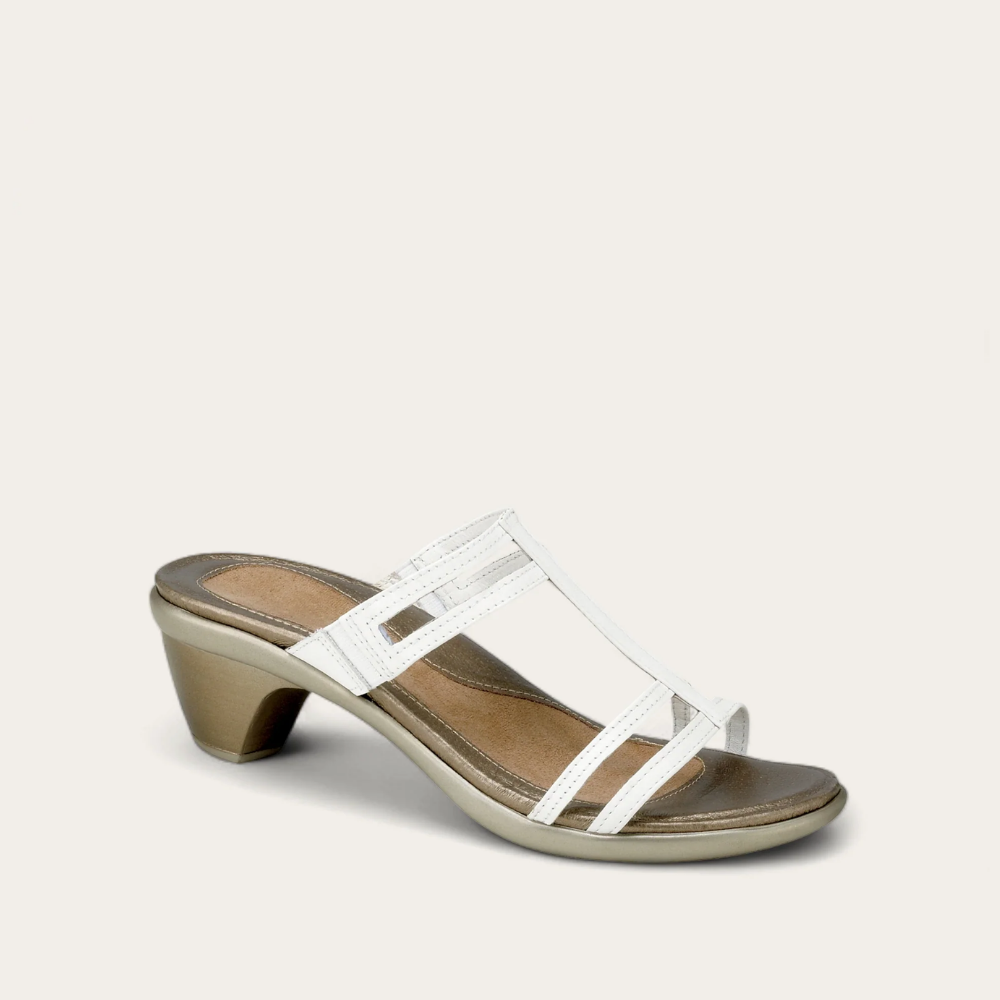 The Loop is a delicate, strappy slide. This sandal has gore at both sides of the instep for adjustability. Naot's anatomic cork and latex footbed is wrapped in leather with a microfiber center to prevent slipping and molds to the shape of the foot with wear. The Avantgarde Collection features a TPR sole with a metal shank. This sole offers the look of a 2" heel without the feel.