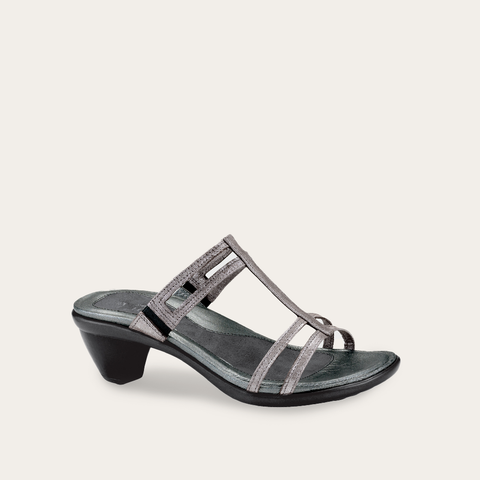 Introducing The Loop - a graceful and strappy slide designed for elegance and comfort. Featuring gore on both sides of the instep for customizable adjustability, this sandal ensures a perfect fit. With its sleek design and 2'' heel, Naot's anatomic cork & latex footbed is wrapped in leather with a microfiber center to prevent slipping and molds to the shape of the foot. The Avantgarde Collection features durable TPR sole with a metal shank. Treat yourself to comfort and elegance with the Naot Loop!