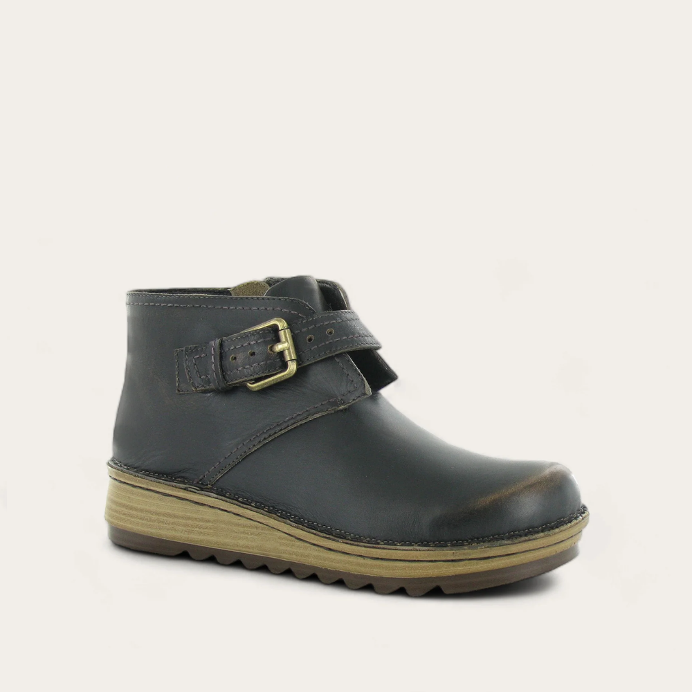 The Naot Luisia is the perfect ankle bootie. This style features an inside zipper and a buckle across the instep for accessibility and adjustability. The Luisia has a padded shaft and tongue for ultimate comfort. This boot has padded technical lining for comfort, warmth and moisture absorption. Naot's removable, anatomic cork and latex footbed is wrapped in pampering suede and molds to the shape of the foot with wear. The Bloom Collection features a 1.75'' polyurethane sole which is extremely lightweight, and durable. Luisia fits our Scandinavian Footbed. SIZE INFO: * 3.5" Shaft Height * 11" Shaft Circumference * Product measurements were taken using size 37 (US Women's 6), Width M * Please note that measurements may vary by size DETAILS: