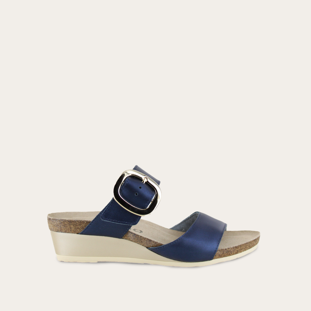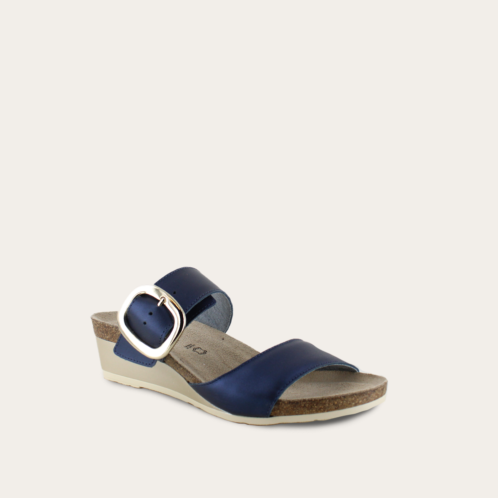 Introducing Magic - your new go-to slide for effortless style and comfort. Imagine this: a chic design with an oversized accent buckle, giving you that trendy edge you've been craving. Say hello to simplicity and elegance with a single statement buckle that ensures a perfect fit every time. Crafted with Naot's anatomic cork and latex footbed wrapped in pampering suede and molds to the shape of your foot with wear, ensuring personalized comfort. The Fantasy Collection's 1.75" sole offers both elegance and support.