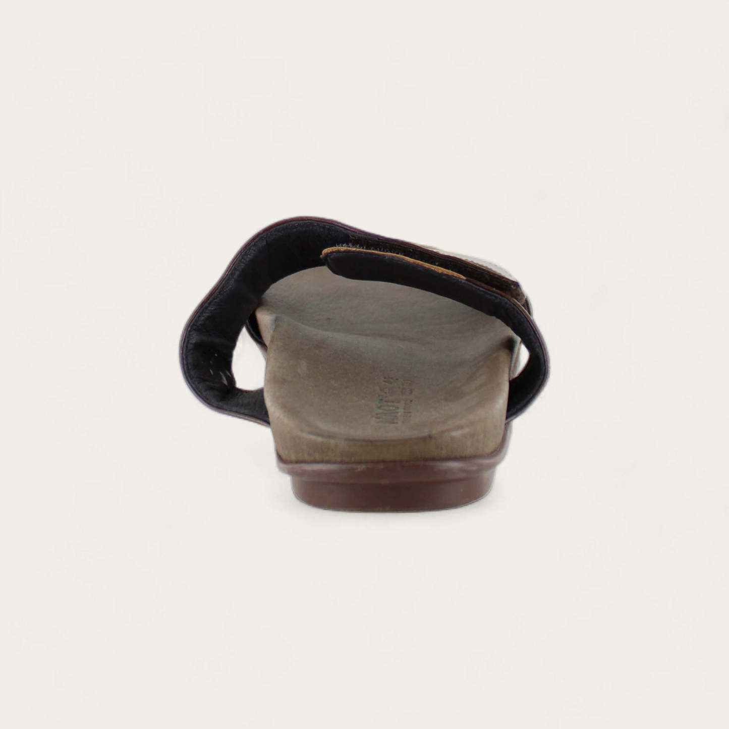 The Maldive slide contains double hook and loop straps to allow adjustability. The insole is constructed of cork, rubber and latex covered in leather for ultimate, smooth comfort.
